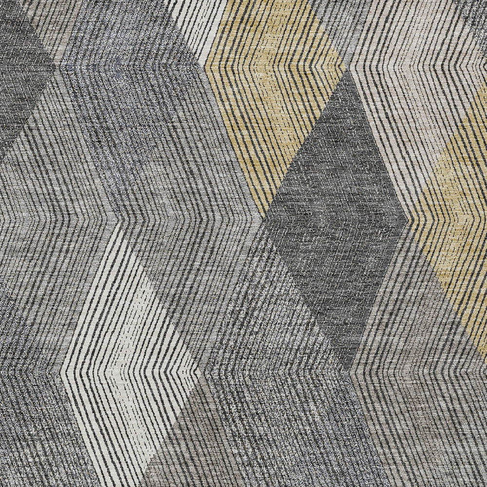 9' X 12' Pewter Gray And Gold Argyle Washable Indoor Outdoor Area Rug