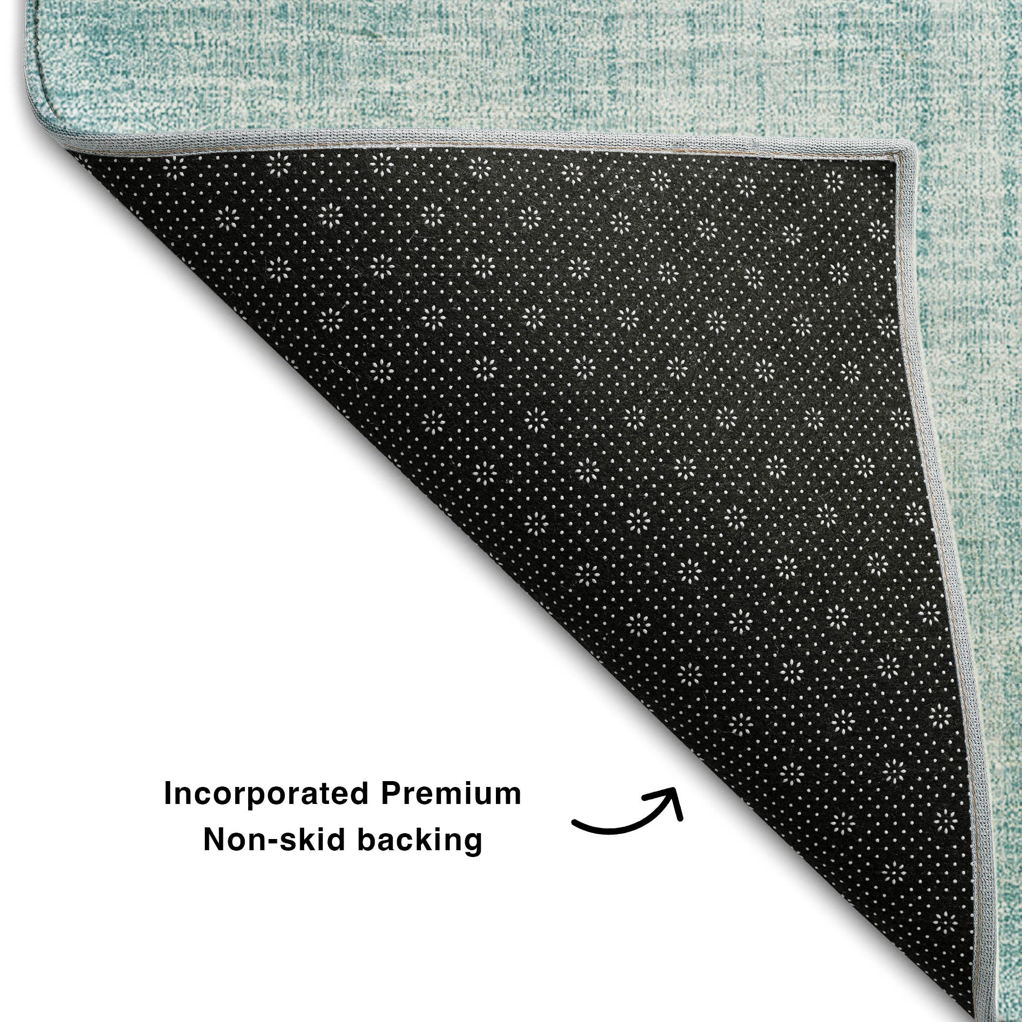 This 9-foot x 12-foot teal and ivory geometric washable area rug with uv protection, is a great way to add warmth to a room. Ideal for spaces with kids and pets, this rug is stain resistant to help repel dirt and spilled liquids. Built to last, this rug crafted from polyester fibers is known for its durability and long lasting appeal. Rugs are a great way to showcase your style, hide imperfections, warm your home and reduce noise. This larger sized, transitional styled rug is ready to create a focal point or statement piece in your room. 108.00-inch h x 144.00-inch w x 0.39-inch d.