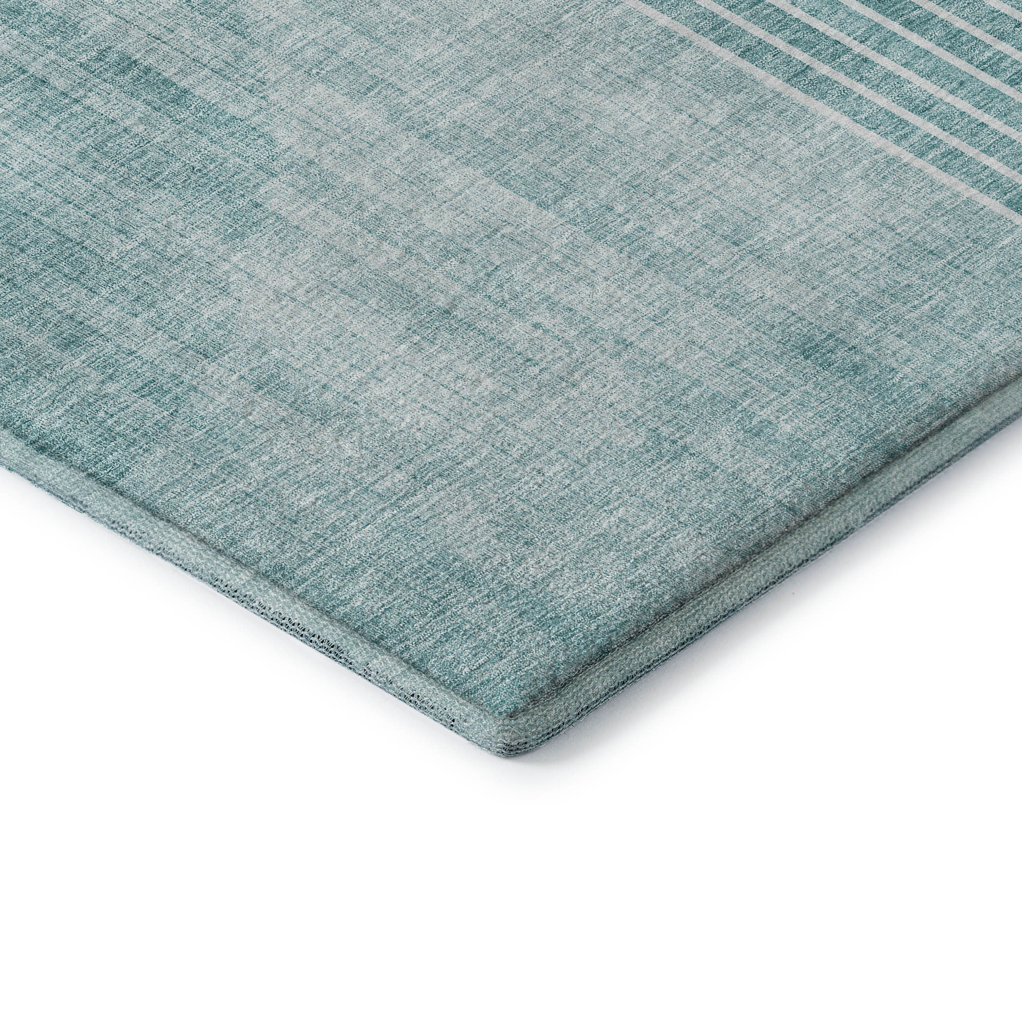 9' X 12' Teal And Ivory Geometric Washable Area Rug With UV Protection