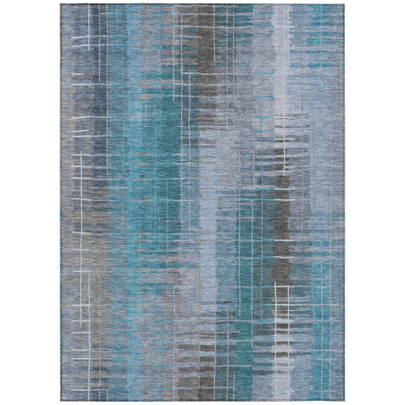 9' X 12' Teal Blue And Gray Striped Washable Indoor Outdoor Area Rug
