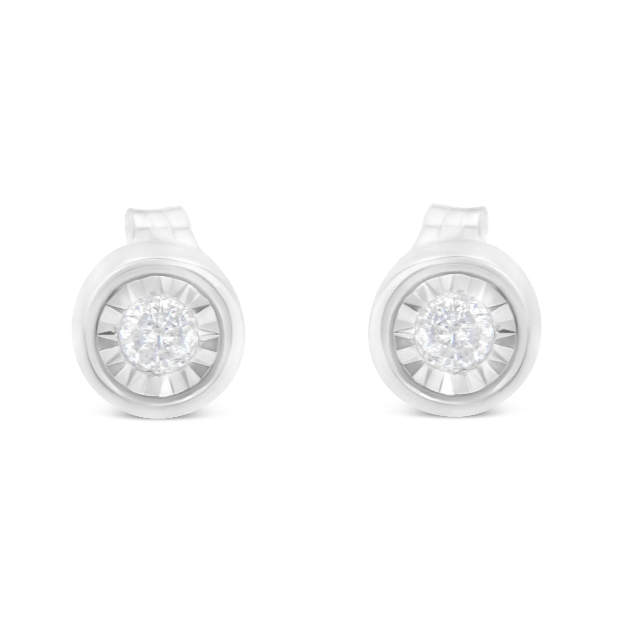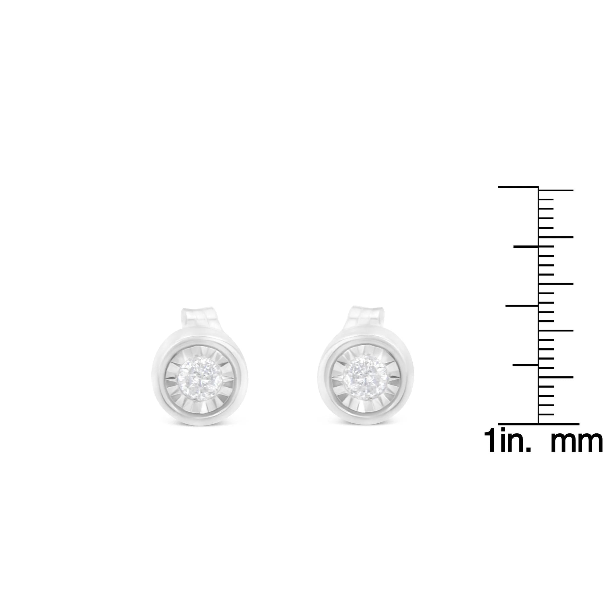 .925 Sterling Silver 1/5 Cttw Round Brilliant-Cut Near Colorless Diamond Miracle-Set Bezel Barrel Style Stud Earrings (I-J Color, I2-I3 Clarity)