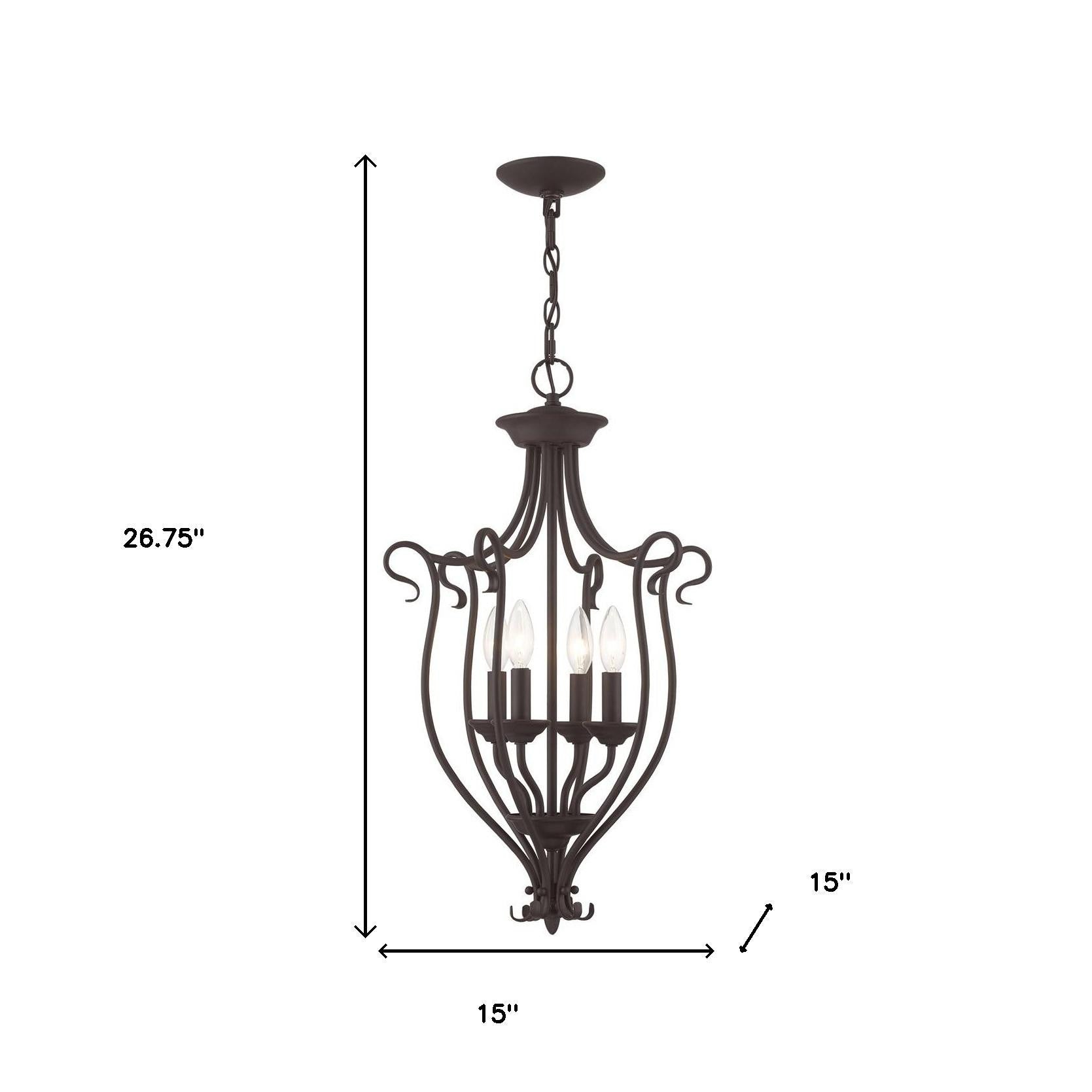 Bronze Four Light Dimmable Chandelier With Shades