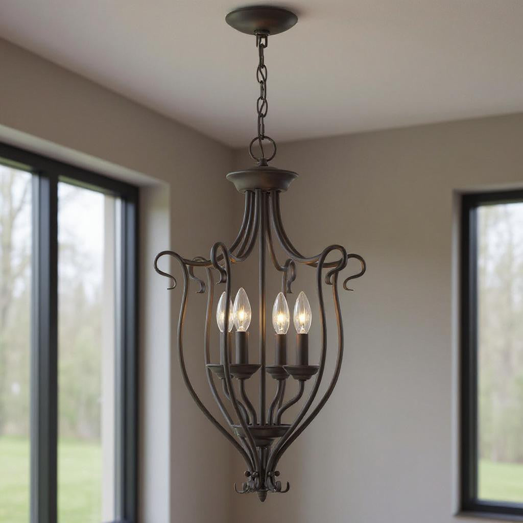 Bronze Four Light Dimmable Chandelier With Shades 本文へスキップ
