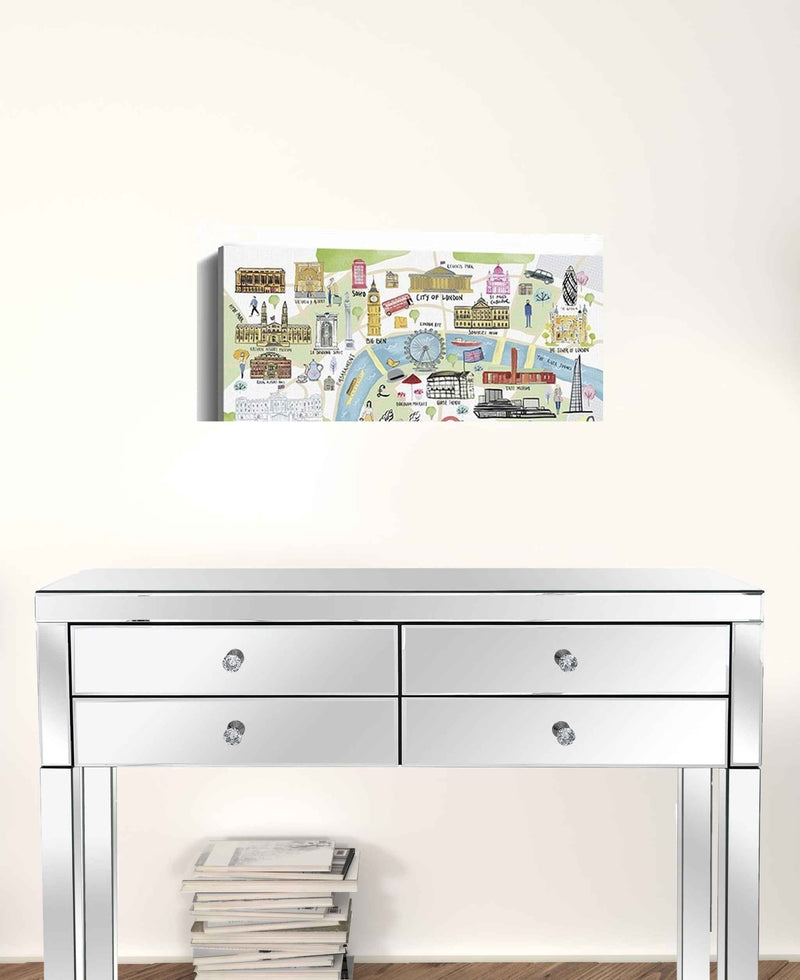 Add an air of fashion to your room and rejuvenate the space with this fun illustrated london map unframed print wall art. This print is a visual artistic expression that allows you to decorate your space in style. Reproduced for you on canvas, this hanging decorative accent will be a trendy and fashionable way to dress your walls. Adding this hanging wall art to your space to make your room feel more finished and attractive. Instantly liven up your space with this art that brings color and dimension to your walls. 24 inches H x 16 inches W x 1.25 inches D