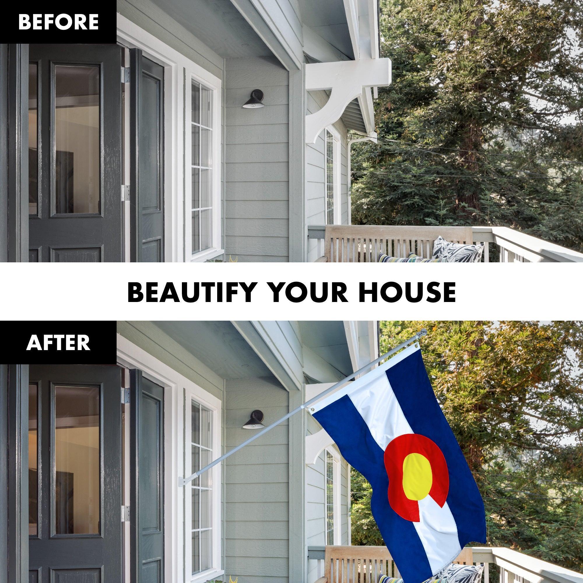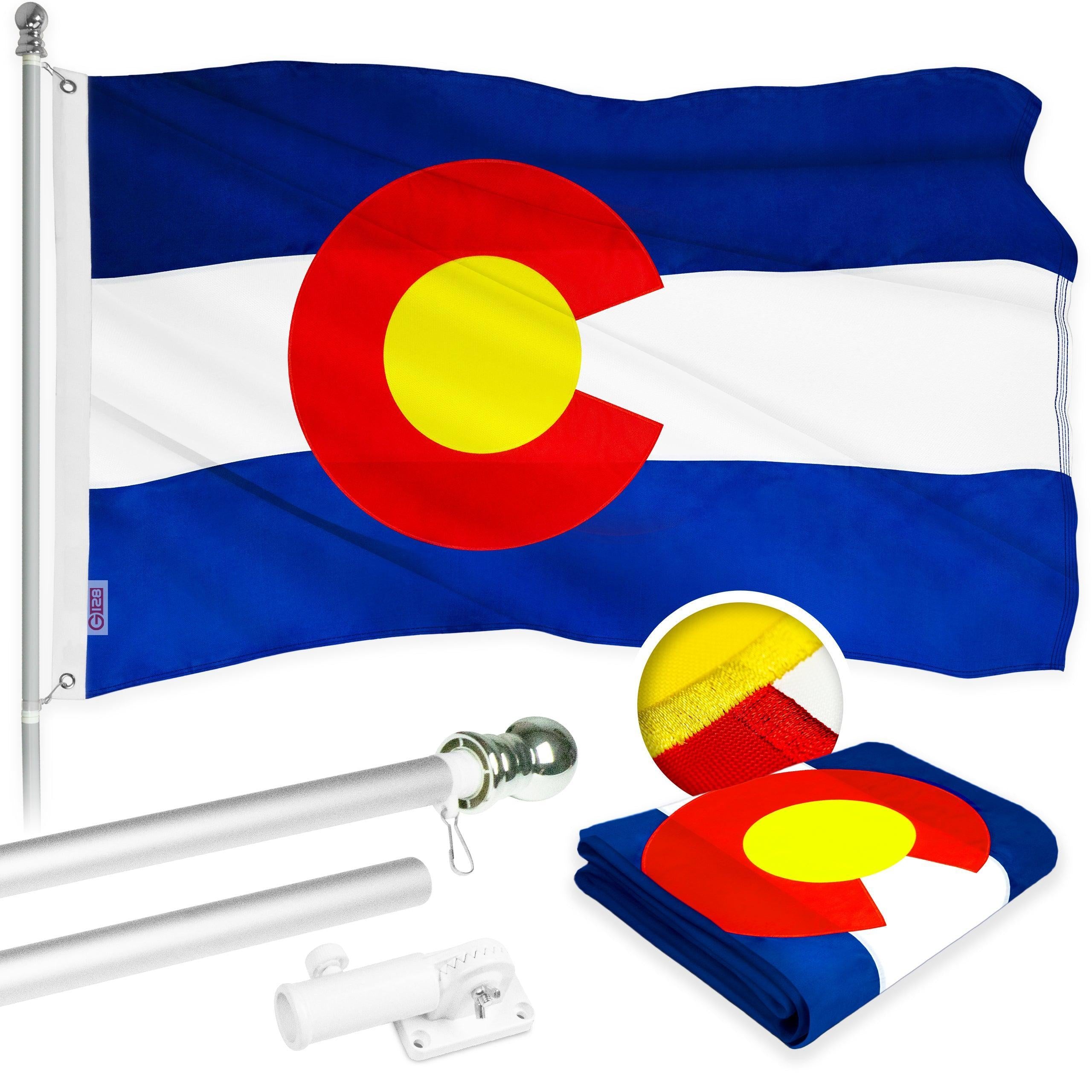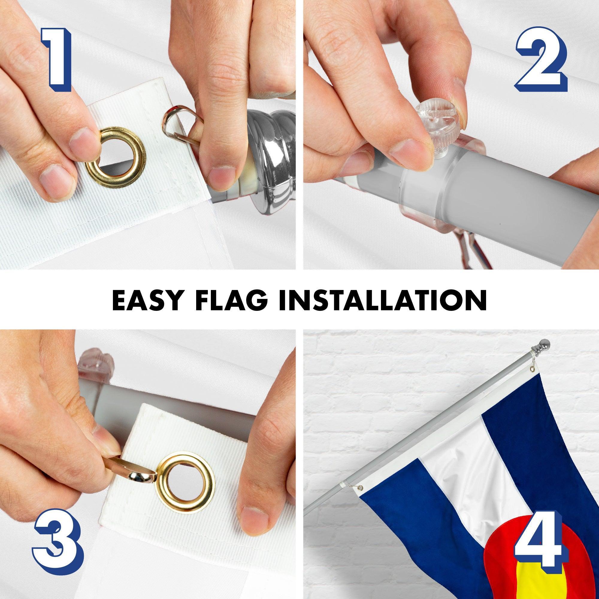 G128 Combo Pack: 5 Ft Tangle Free Aluminum Spinning Flagpole (Silver) & Colorado CO State Flag 2x3 Ft, ToughWeave Series Embroidered 300D Polyester | Pole with Flag Included