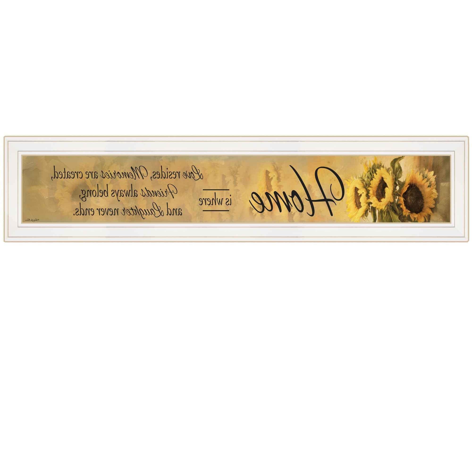 This home ise 1 white framed print wall art will add a beautiful decorative accent to your decor. This print is a visual artistic expression that allows you to decorate your space in style. Reproduced for you on paper, this hanging decorative accent will be a trendy and fashionable way to dress your walls. Hang on your wall to add some up to date fashion and decoration. Instantly liven up your space with this art that brings color and dimension to your walls. 9 inches H x 39 inches W x 1 inches D