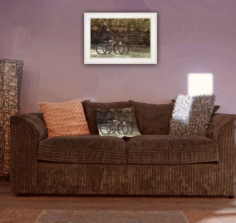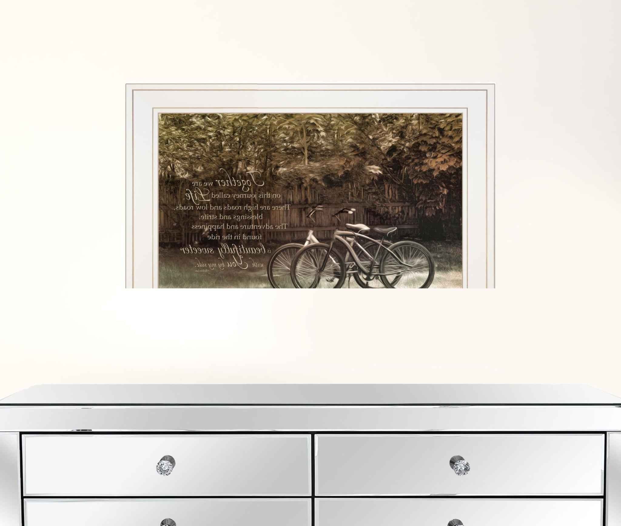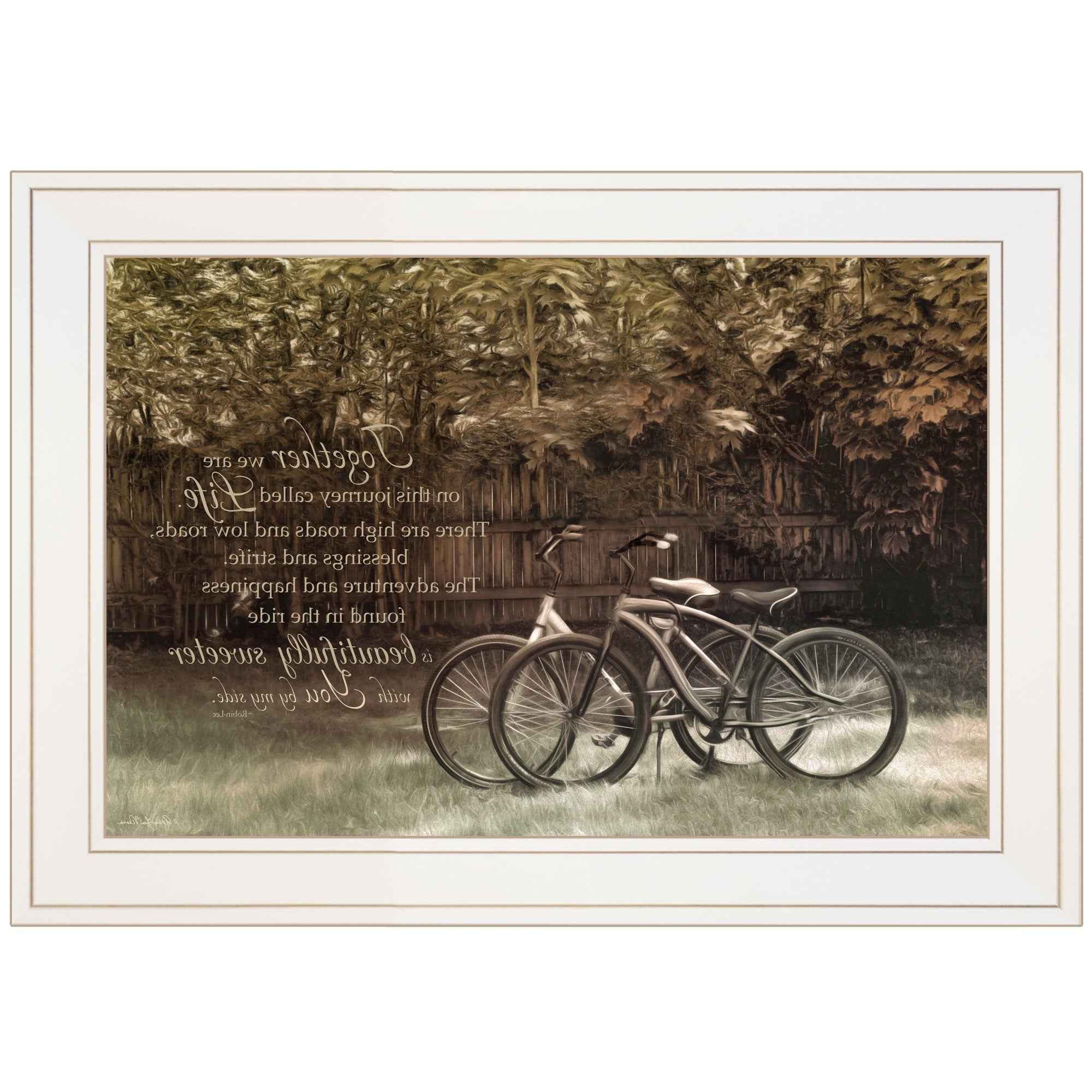 Add an air of fashion to your room and rejuvenate the space with this journey together 1 white framed print wall art. This transportation inspired wall art features a bicycle icon and will bring a refreshing look and perspective to your walls. This print is a visual artistic expression that allows you to decorate your space in style. Reproduced for you on paper, this hanging decorative accent will be a trendy and fashionable way to dress your walls. Hang on your wall to add some up to date fashion and decoration. Utilize this opportunity to create a focal point in the room with this fabulous wall decor option. 15 inches H x 21 inches W x 1 inches D