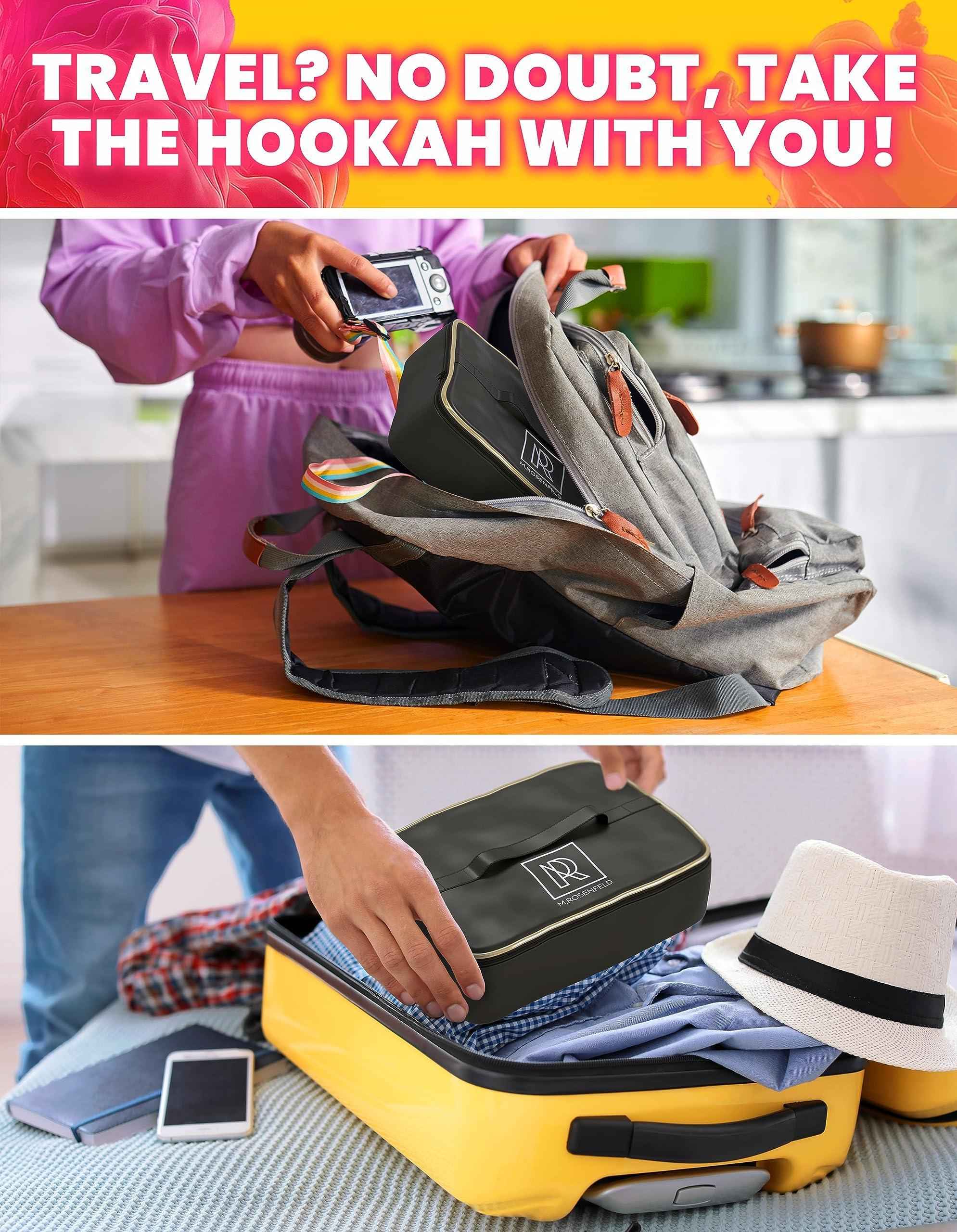 M. ROSENFELD Portable White Hookah Set With Everything And Bag   Premium White Small Hookah Set For Travel Flat Hookah Box Hookah Set With Charcoal Holder   Travel Hookah Set With Everything