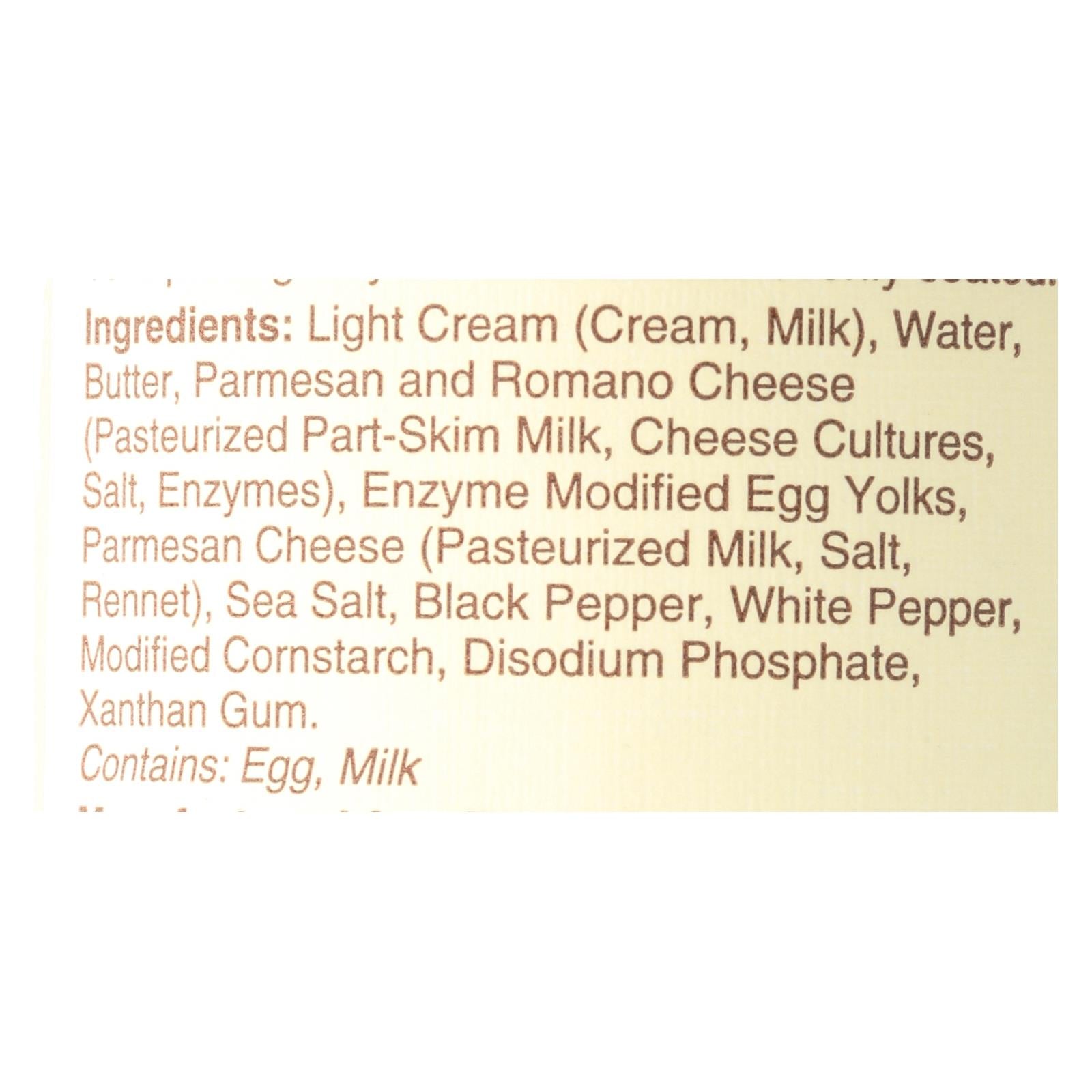 ingredients : cream;milk;parmesan cheese (cow's milk, salt, rennet);salt;corn starch;disodium phosphate;xanthan gum;black pepper