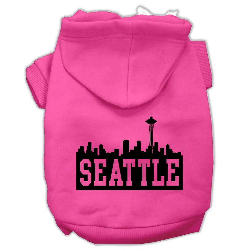 Seattle Skyline Screen Print Pet Hoodies Bright Pink Size Xl