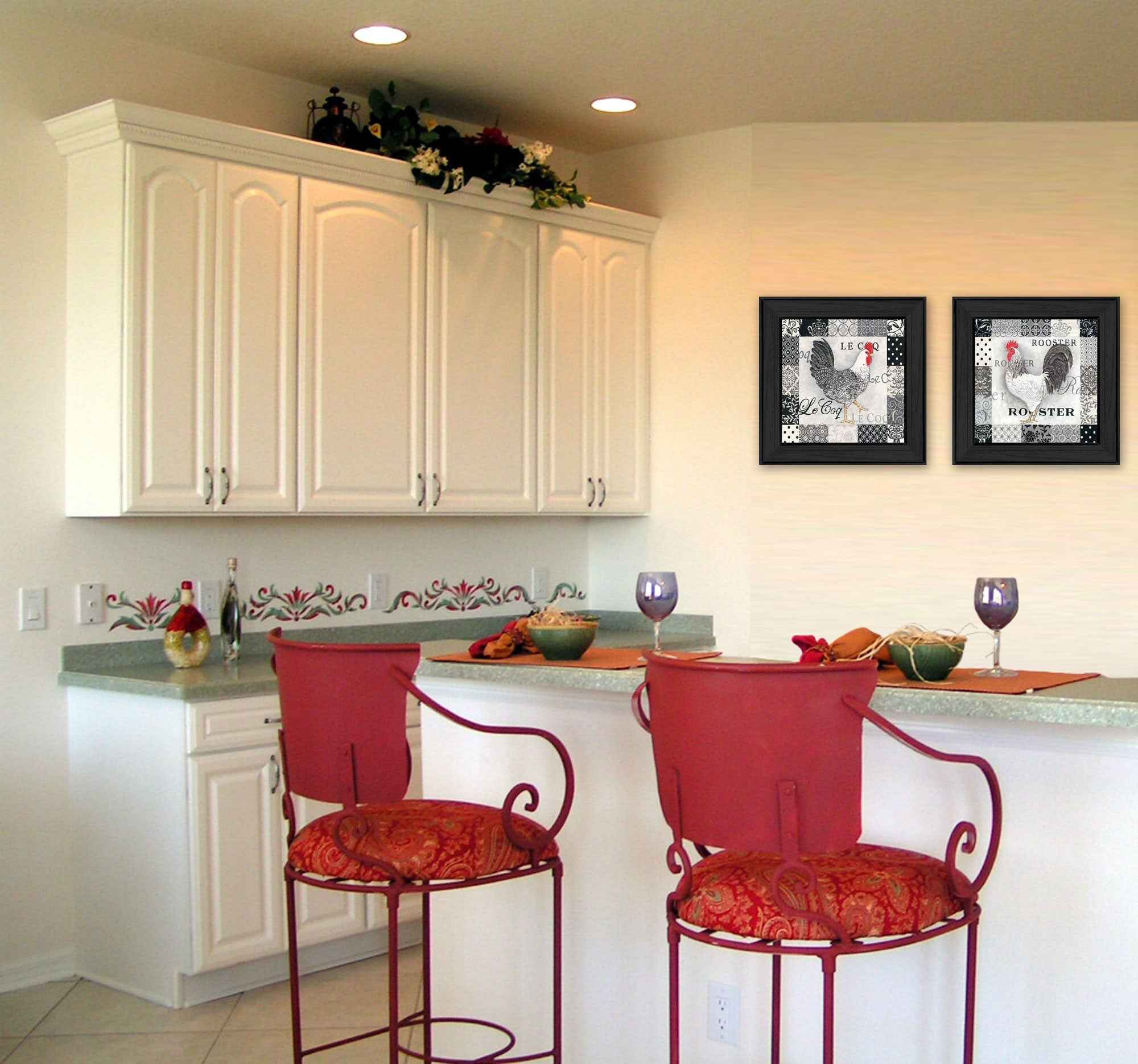 Unique and decorative, this set of two rooster I black framed print wall art will leave a lasting impression. Update your walls with this farm animal decor. This print is a visual artistic expression that allows you to decorate your space in style. Reproduced for you on paper, this hanging decorative accent will be a trendy and fashionable way to dress your walls. Hang on your wall to add some up to date fashion and decoration. Utilize this opportunity to create a focal point in the room with this fabulous wall decor option. 14 inches H x 28 inches W x 1.5 inches D