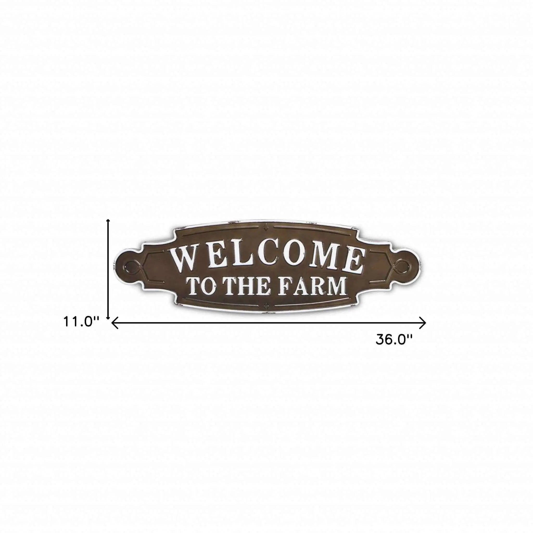 Welcome To The Farm Lacquered Black And White Metal Wall Art