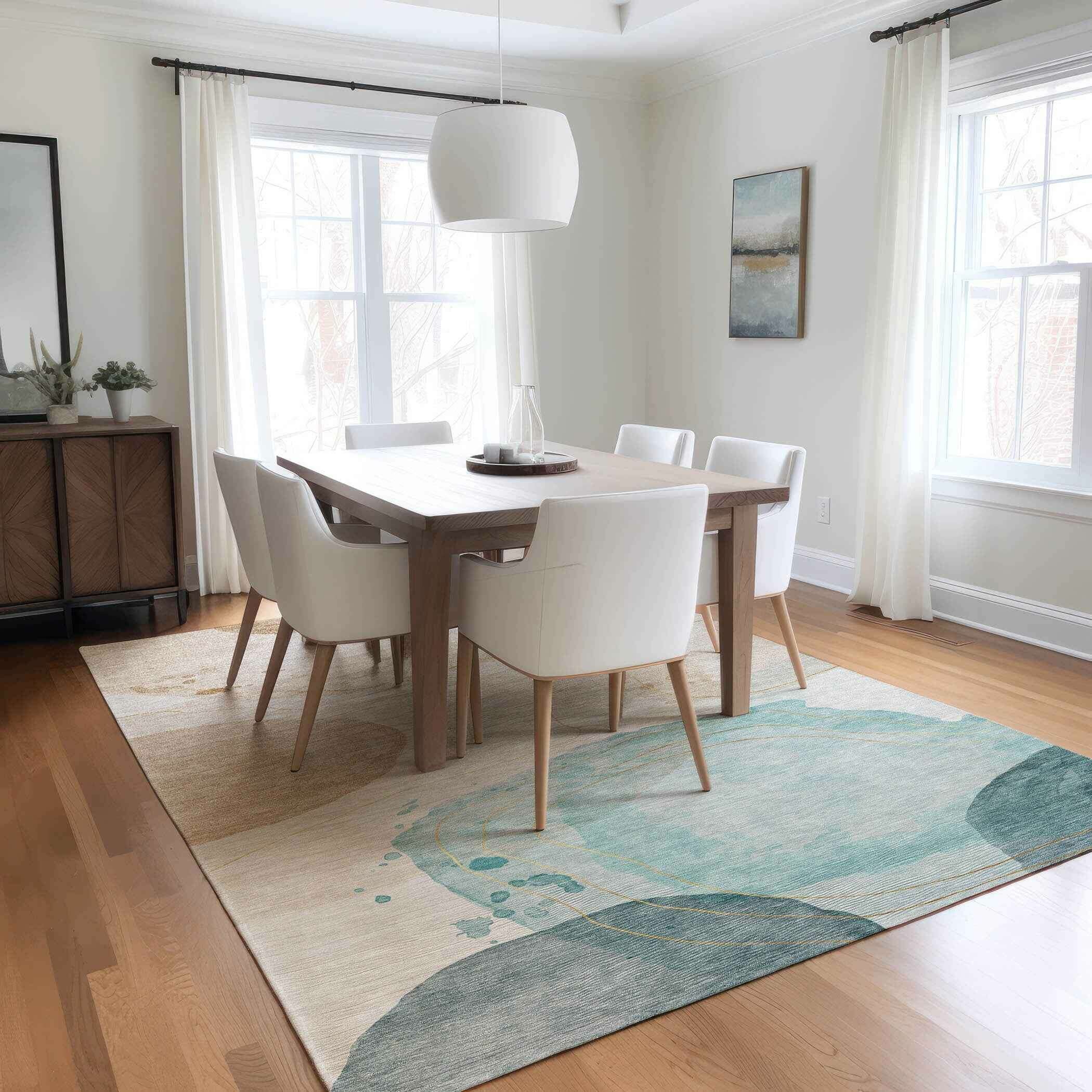 Set an inviting tone in your space with this 10-foot x 14-foot beige and blue abstract washable stain resistant non skid indoor outdoor area rug. This rectangle shaped rug features a abstract design in beige and blue to give it visual interest. A classic shape marries with good looking design for your space ideal for spaces with kids and pets, this rug is stain resistant to help repel stains and spilled liquids. Area rugs help to give warmth and sense of home to your space. 120-inch H x 168-inch W x 0.19-inch D
