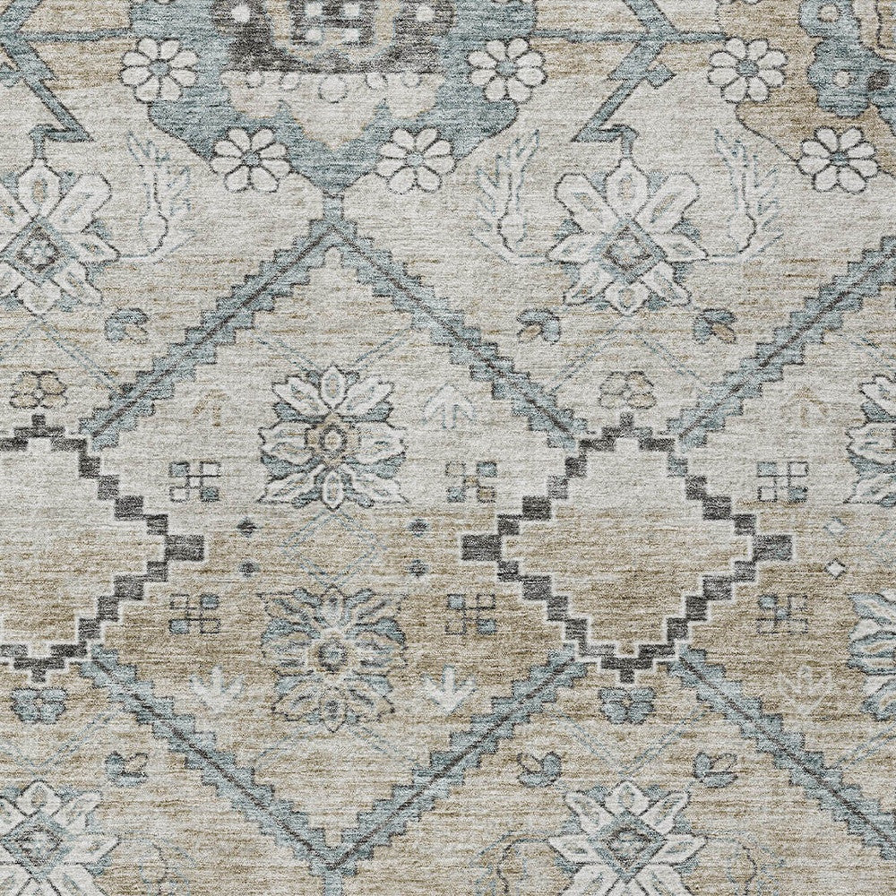 10' X 14' Beige Taupe And Tan Floral Washable Indoor Outdoor Area Rug