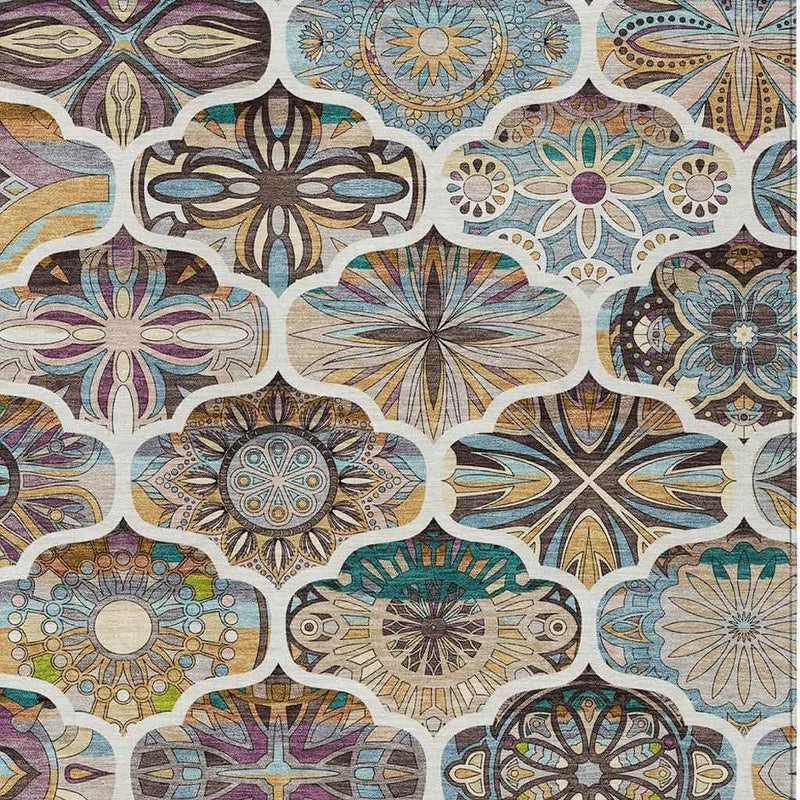 Set an inviting tone in your space with this 10-foot x 14-foot beige teal blue and copper quatrefoil washable indoor outdoor area rug. This rectangle shaped rug features a quatrefoil design that will work well both indoors or out. A classic shape marries with good looking design for your living room, hall, bedroom, porch, patio, or poolside. Ideal for outdoor spaces or high traffic areas with kids and pets, this rug is made from heavy duty polyester that is stain resistant to help repel water, dirt, and stains. Versatile in use, durable, and easy to maintain, this rug is an ideal solution to add a decorative and inviting touch to your indoor or outdoor space. 120-inch h x 168-inch w x 0.19-inch d.