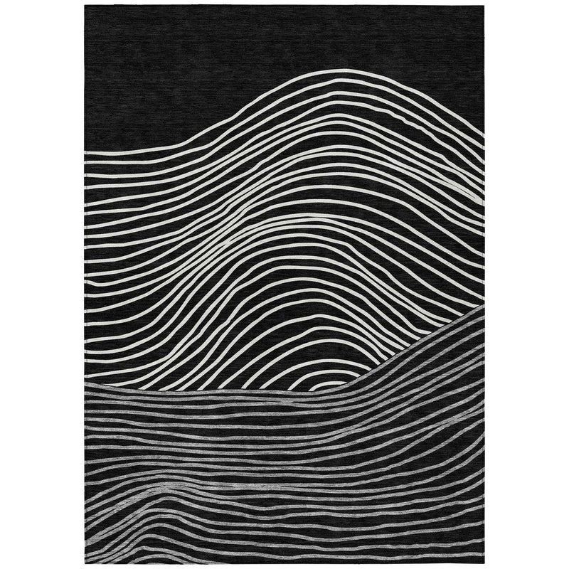 10' X 14' Black Ivory And Gray Striped Washable Indoor Outdoor Area Rug