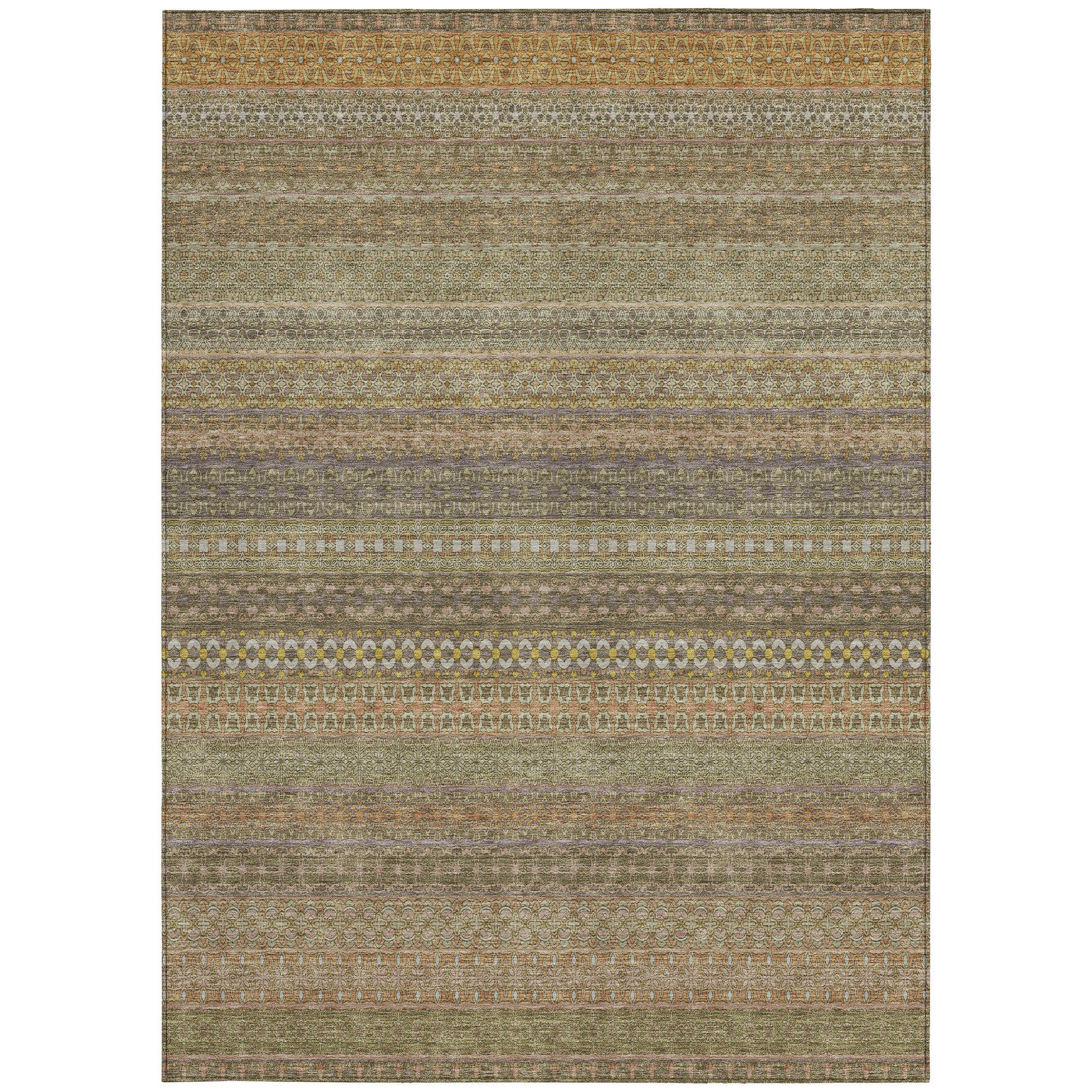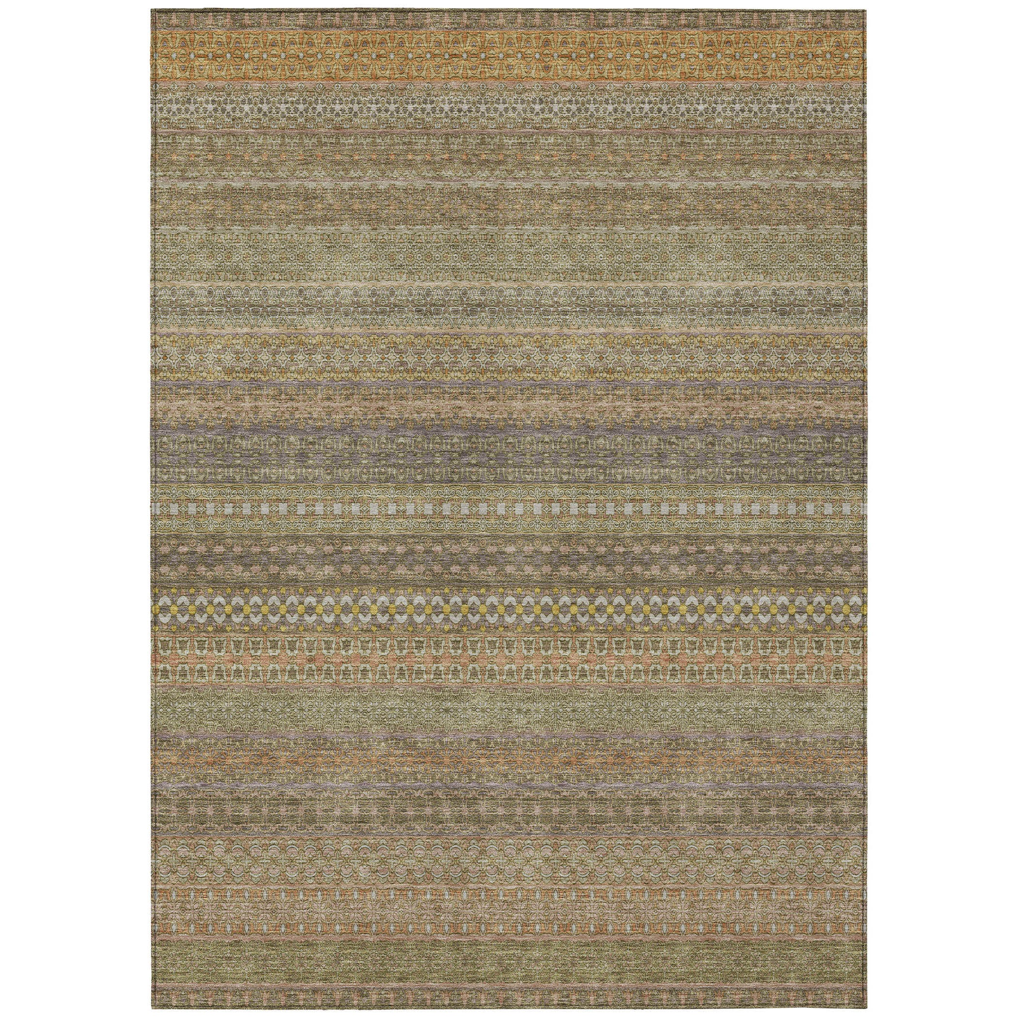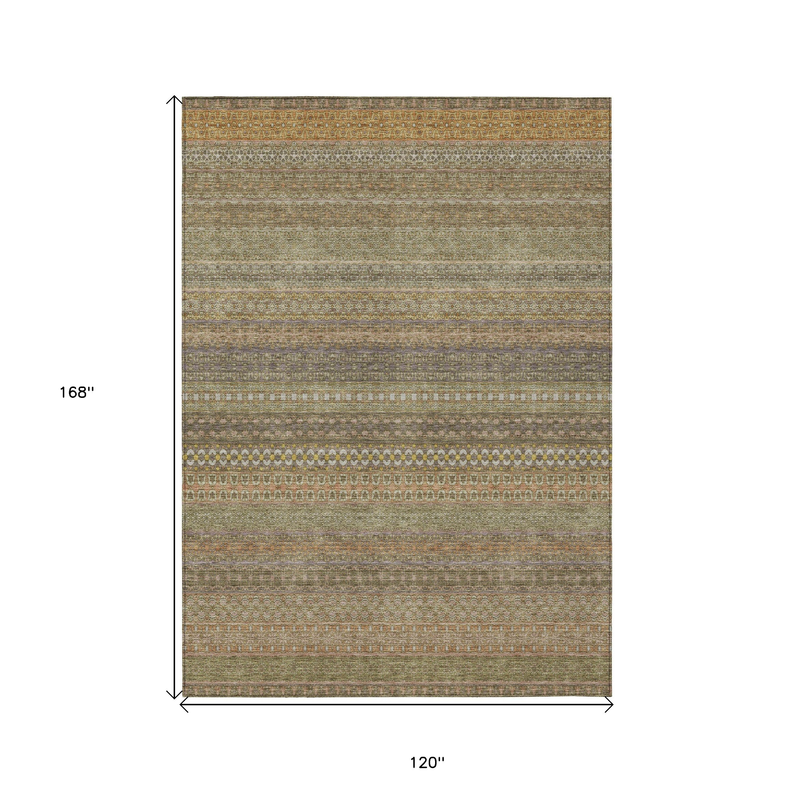 10' X 14' Khaki Striped Washable Non Skid Indoor Outdoor Area Rug