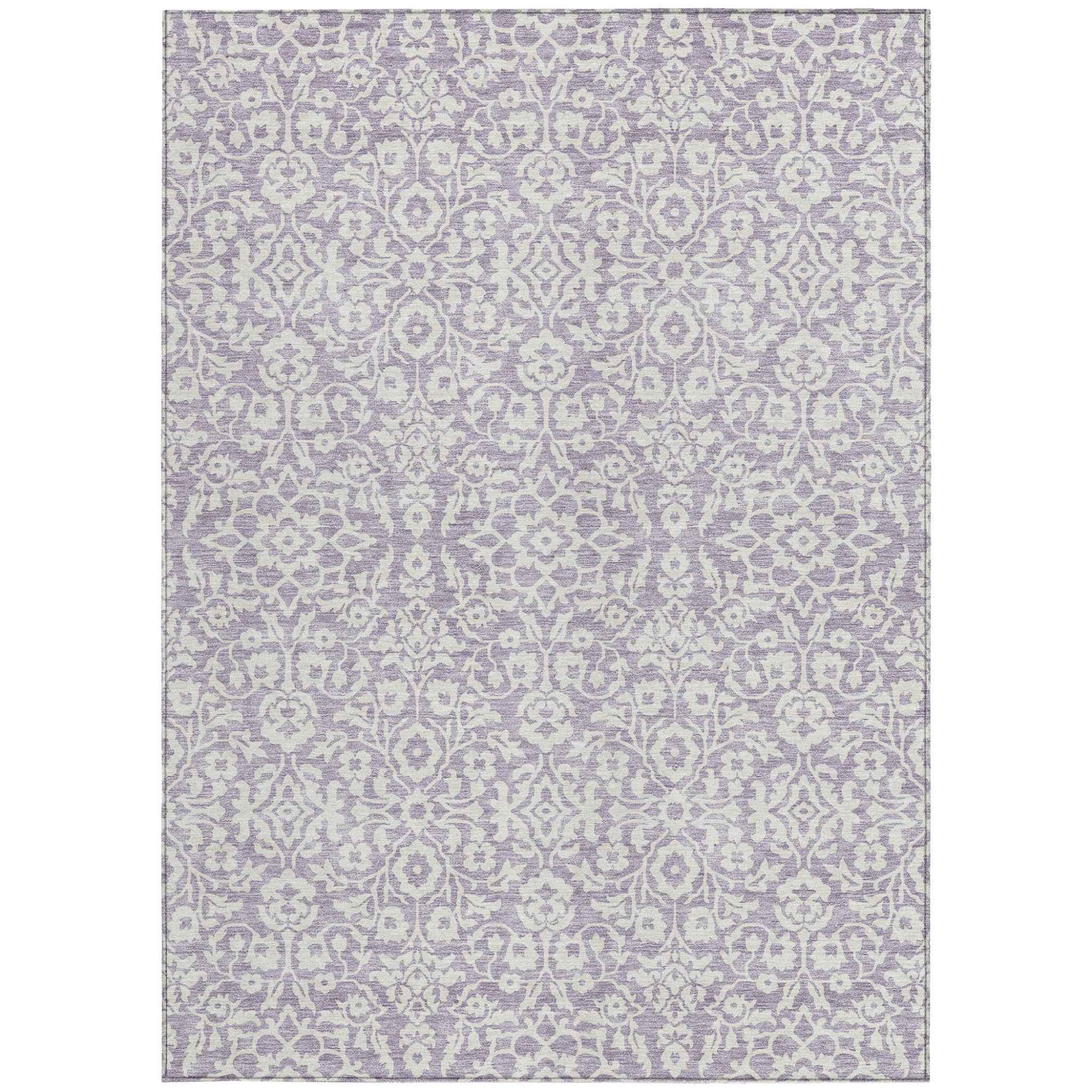 10' X 14' Lavender And Ivory Damask Washable Indoor Outdoor Area Rug