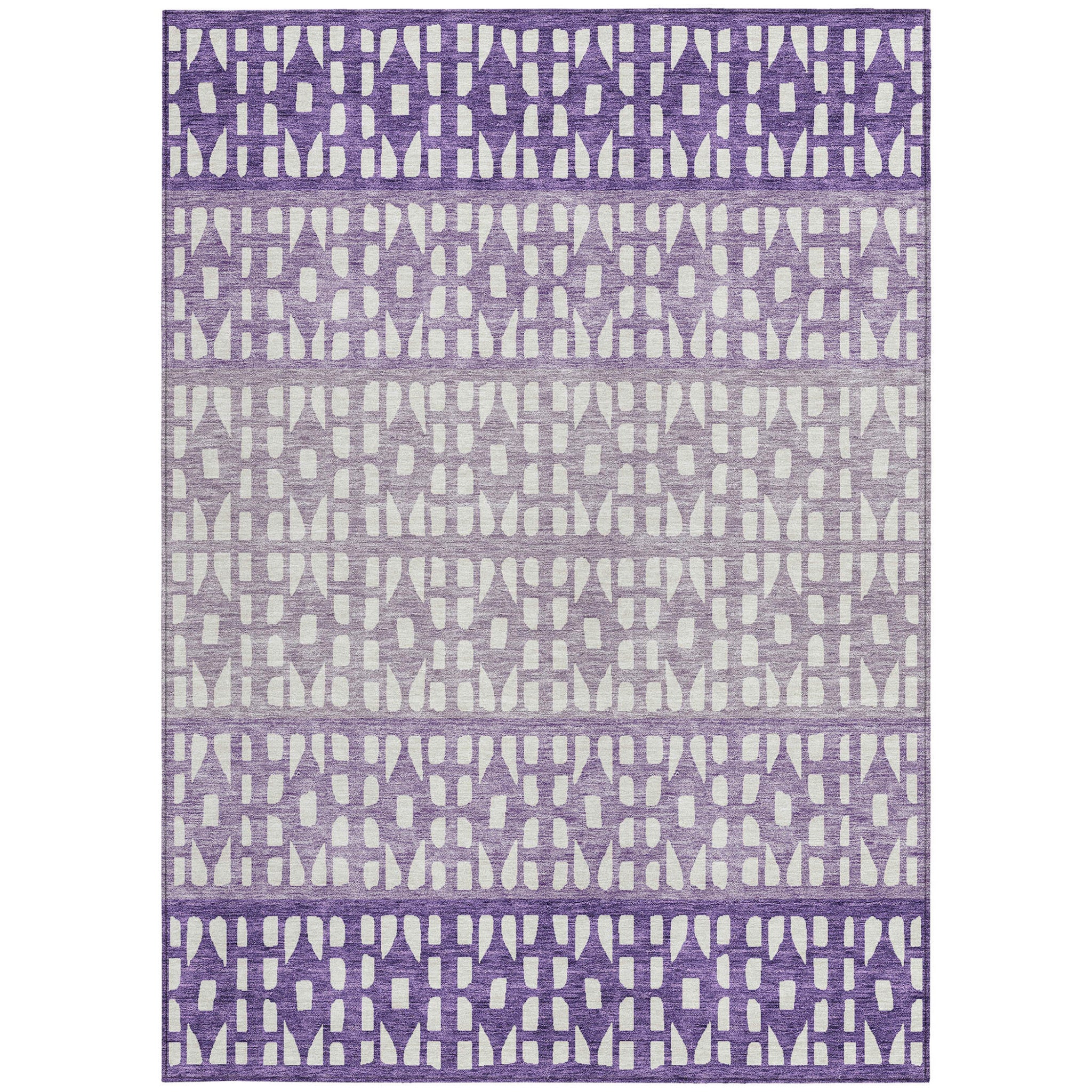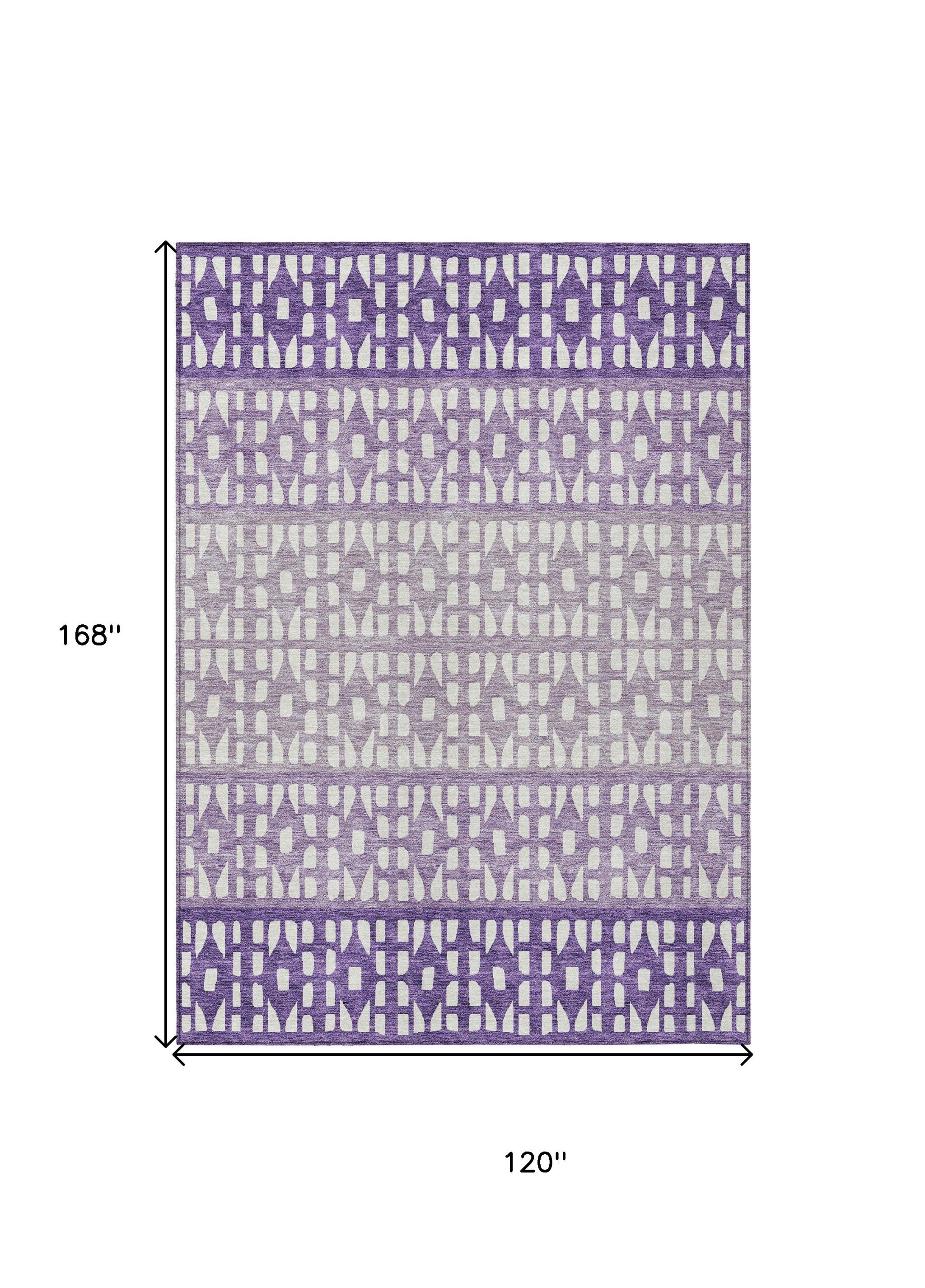 10' X 14' Purple Lavender And Ivory Geometric Washable Indoor Outdoor Area Rug
