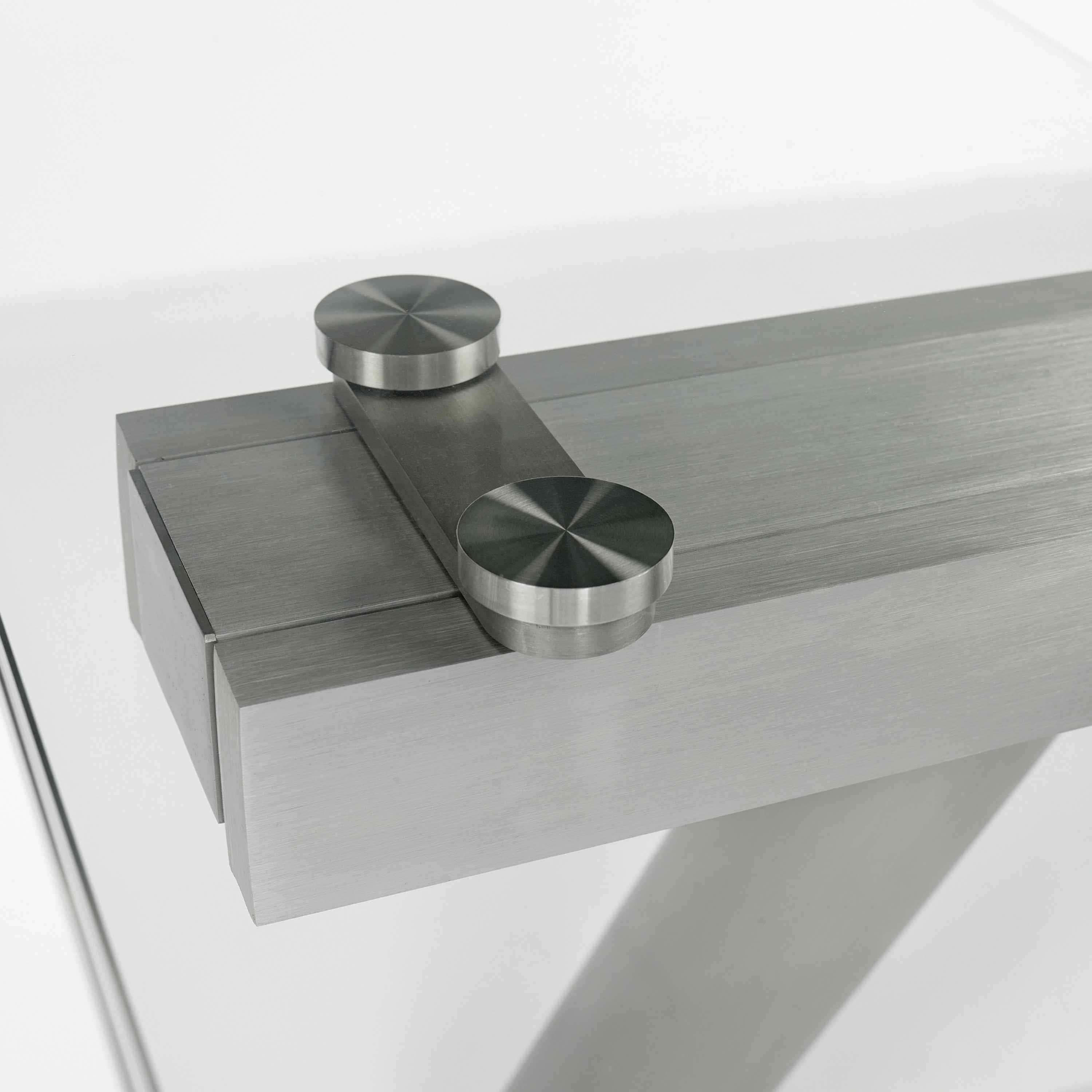 103" Clear and Silver Glass and Steel Self-Storing Leaf Extendable Skip to content