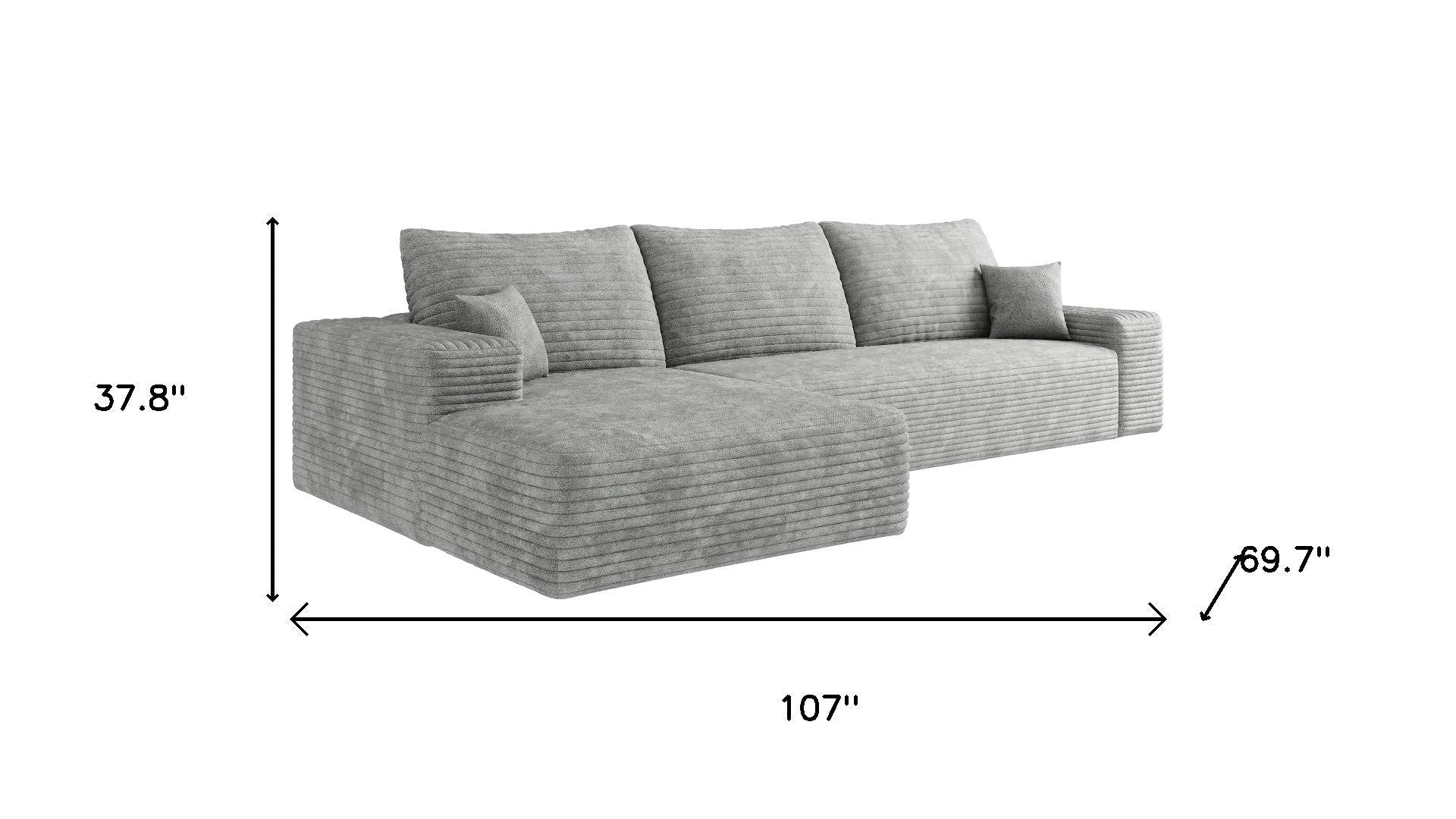 107" Gray Corduroy Modular Compression Foam Sofa With Toss Pillows
