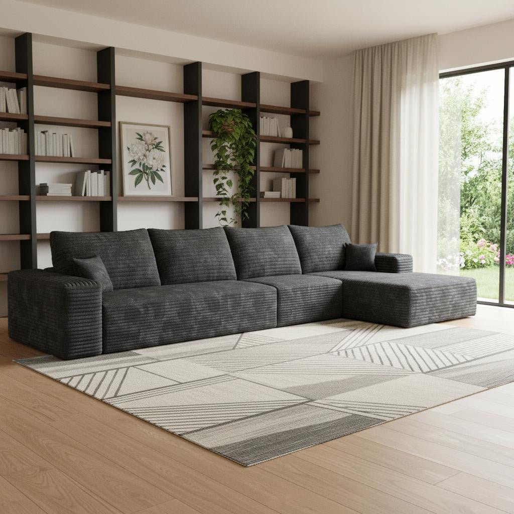 135" Black Corduroy Modular Compression Foam Sofa With Toss Pillows - Skip to content
