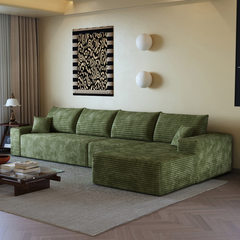 135" Green Corduroy Modular Compression Foam Sofa With Toss Pillows - Skip to content