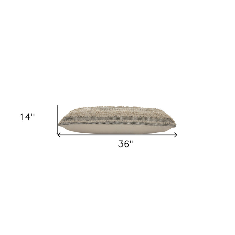 14" X 36" Gray And Ivory 100% Cotton Chevron Zippered Pillow
