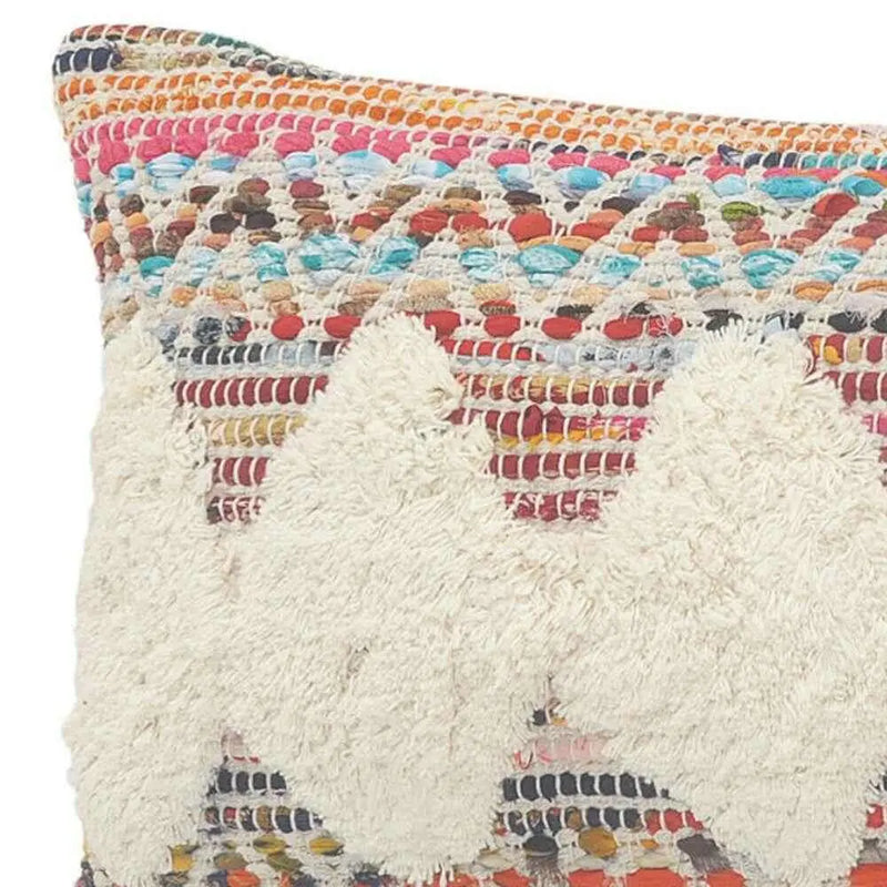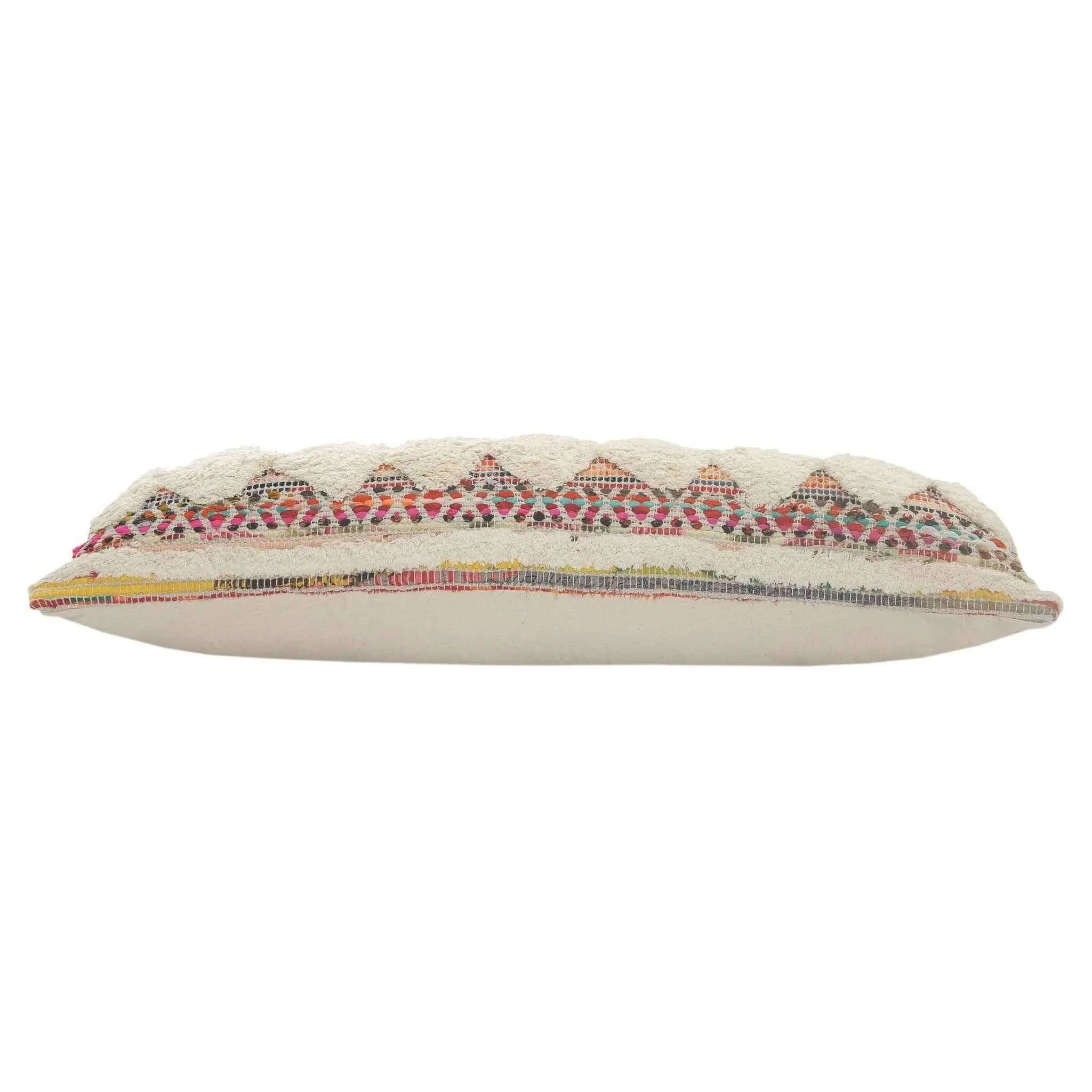 14" X 36" Off-White Red Blue Orange And Green 100% Cotton Striped Zippered Pillow