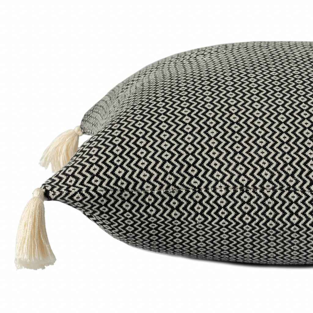 18" X 18" Black 100% Cotton Geometric Zippered Pillow