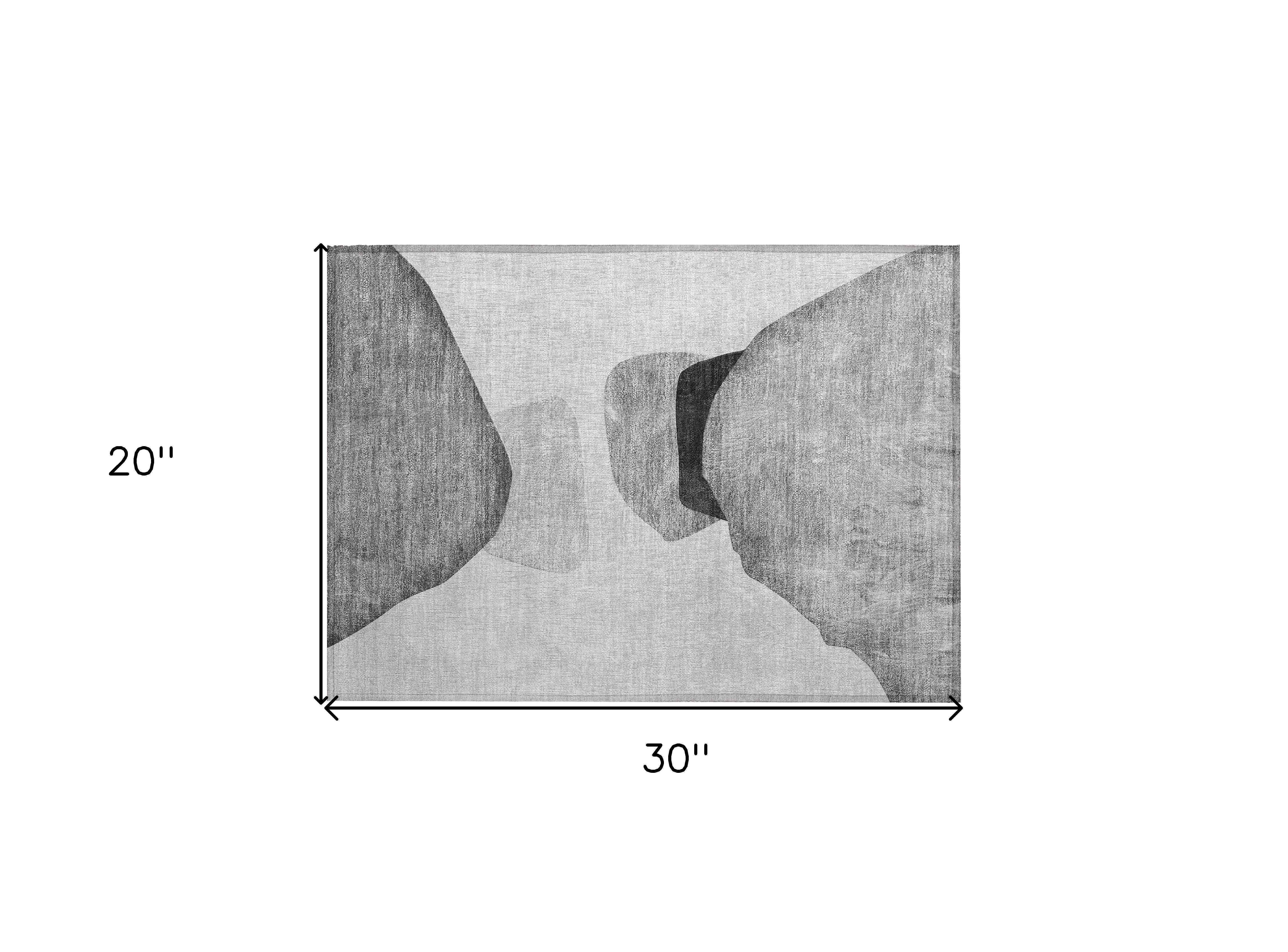 2' X 3' Gray and Black Abstract Washable Non Skid Indoor Outdoor Area Rug