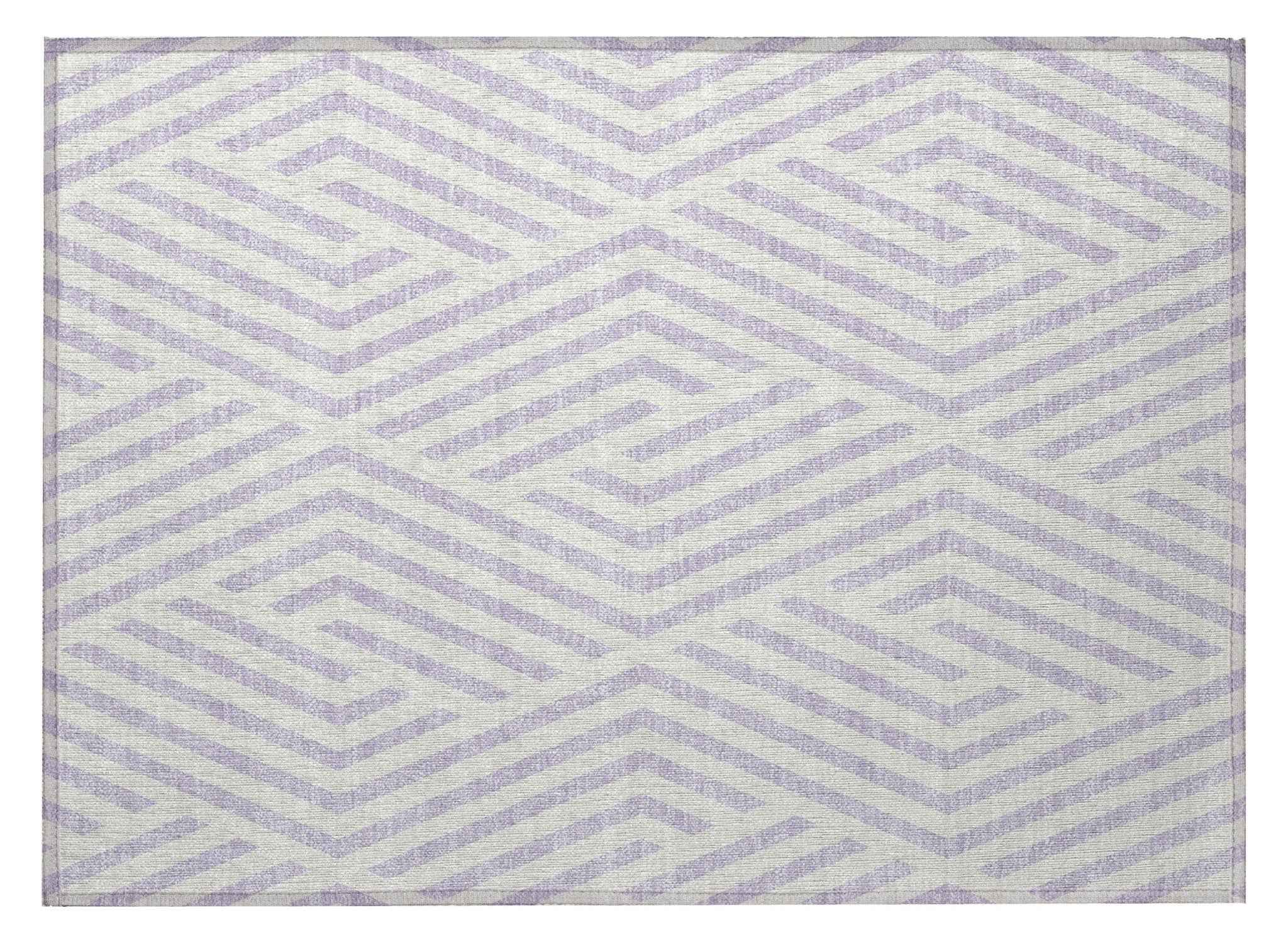 2' X 3' Lavender and Ivory Geometric Washable Non Skid Indoor Outdoor Area Rug