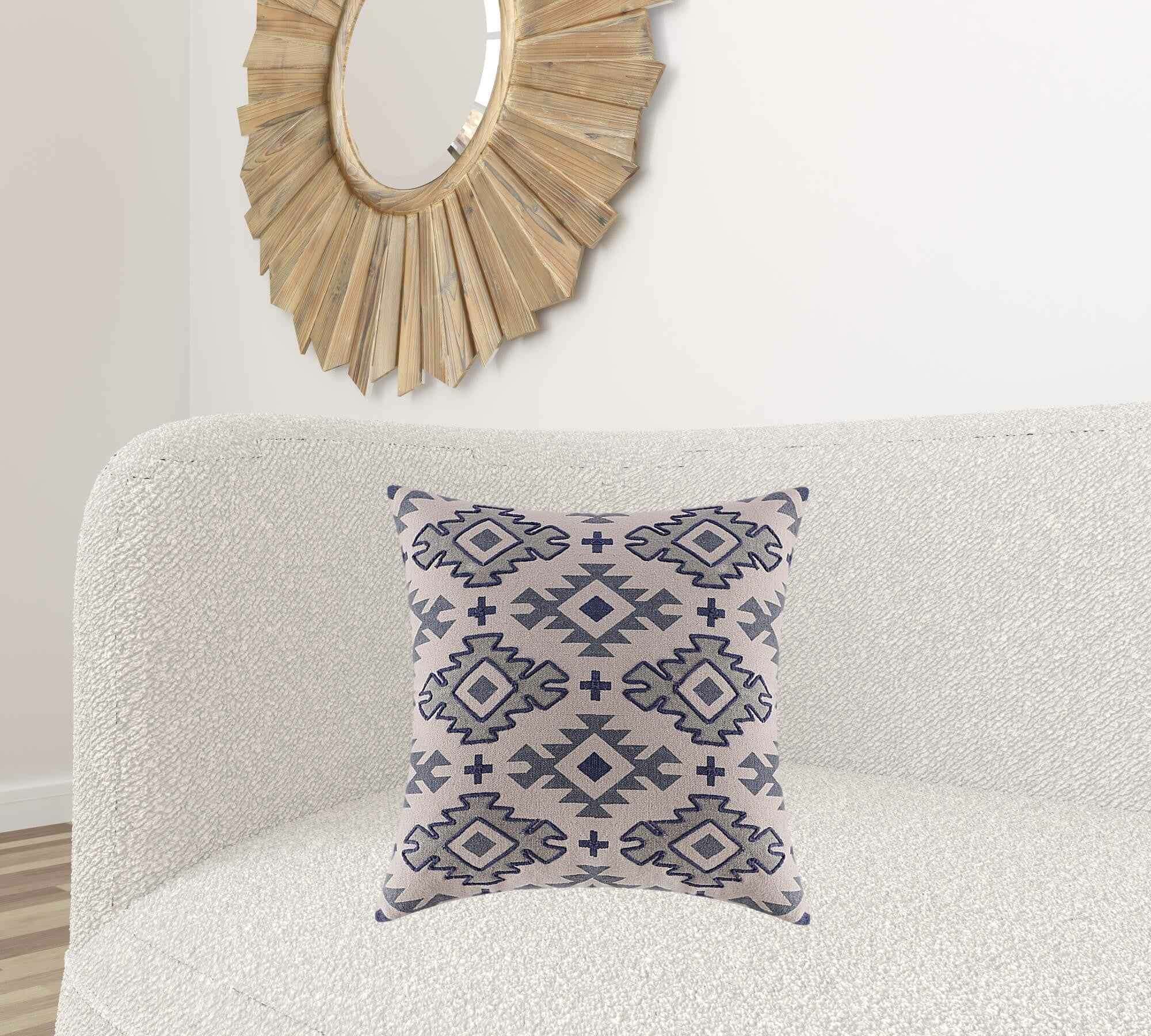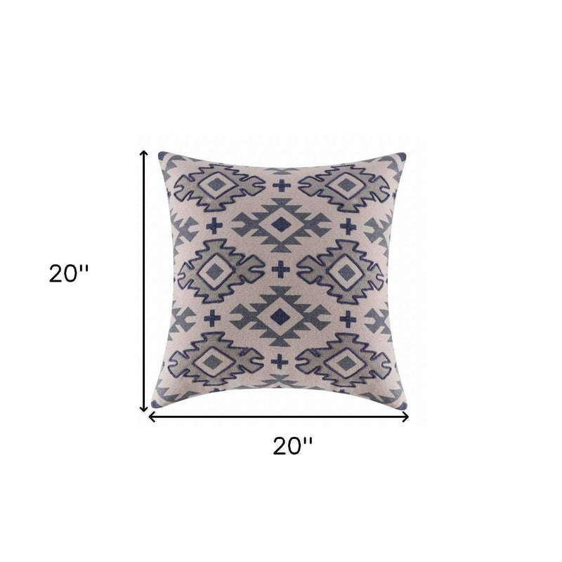 20" X 20" Blue And Gray 100% Cotton Geometric Zippered Pillow