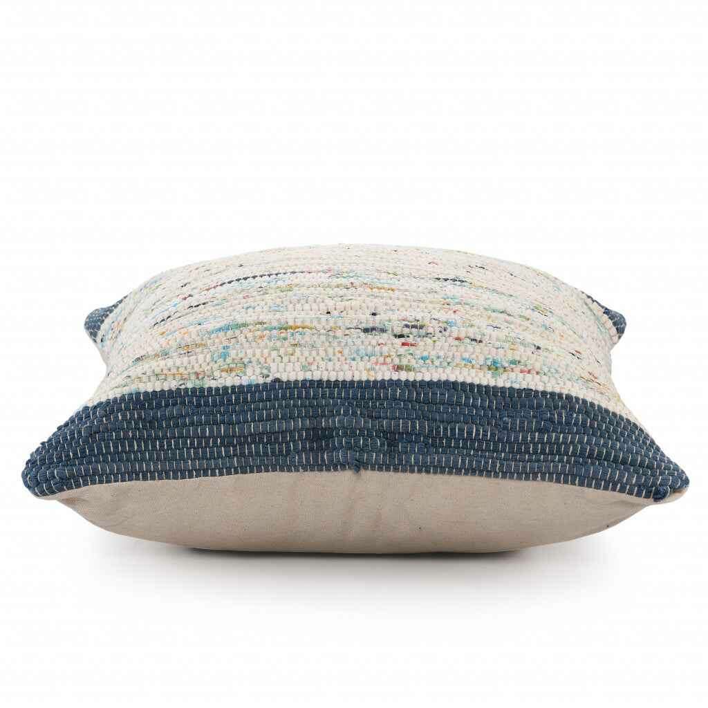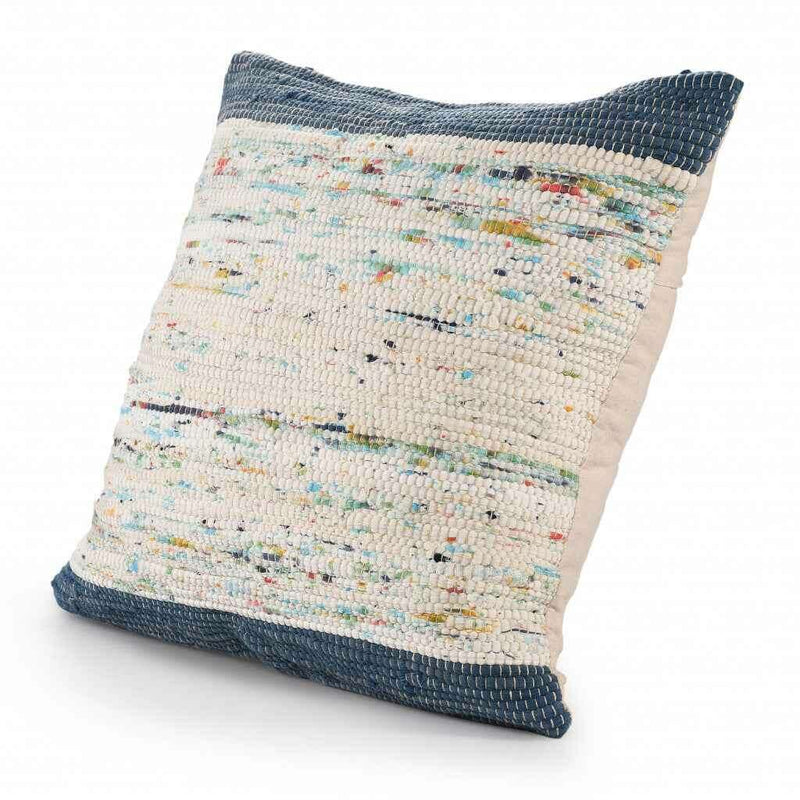 The 20" x 20" blue and off-white 100% cotton abstract zippered pillow is the perfect decorative accessory for your home. The blue and off-white coloring of the soft and long lasting 100% cotton will add dimension and texture to your space. Great to use on its own or mix with other decorations for the perfect look. A great decorative accessory for your favorite chair, to accent your sofa, or to use as part of your bed ensemble. 4" H x 20" W x 20" D