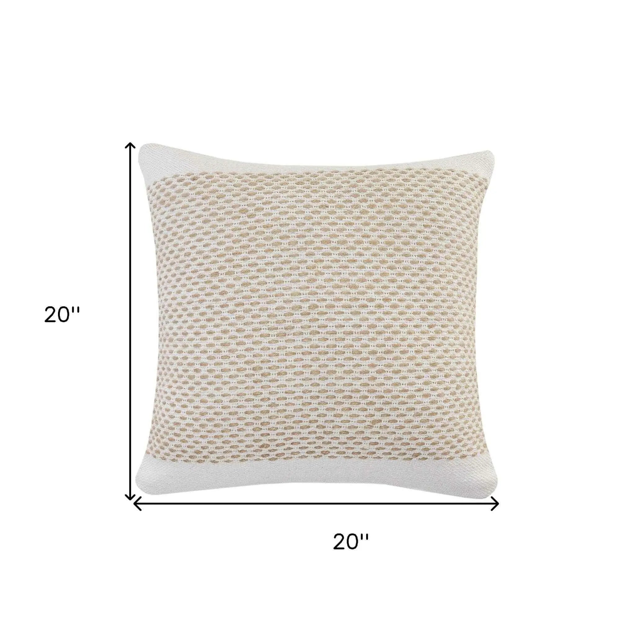 20" X 20" Ivory And Tan 100% Cotton Geometric Zippered Pillow