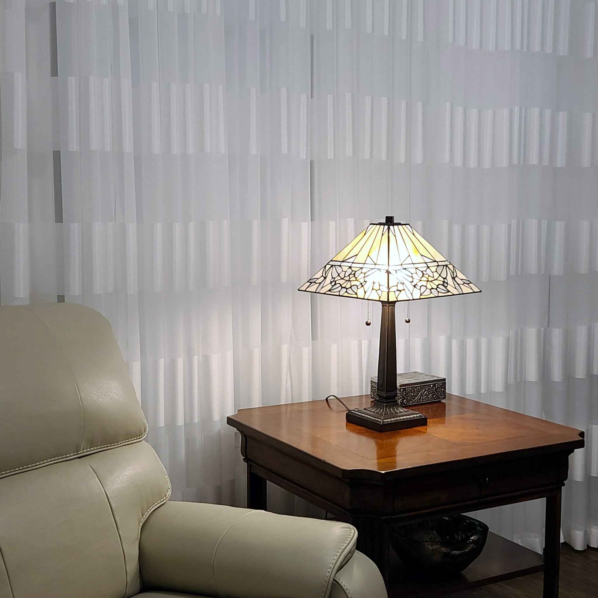 Embrace the good life with this hard working and stylish 22-inch dark brown metal two light candlestick table lamp with white shade. The base of this lamp is made of metal finished in a dark brown tone. This standard table lamp is designed to provide general lighting to the area. The light that this lamp throws is soft and warm to elevate the look of most any space in your home. Bring some lite and good vibes into your space with this updated and stylishly designed lamp. 22-inch H x 21-inch W x 11-inch D