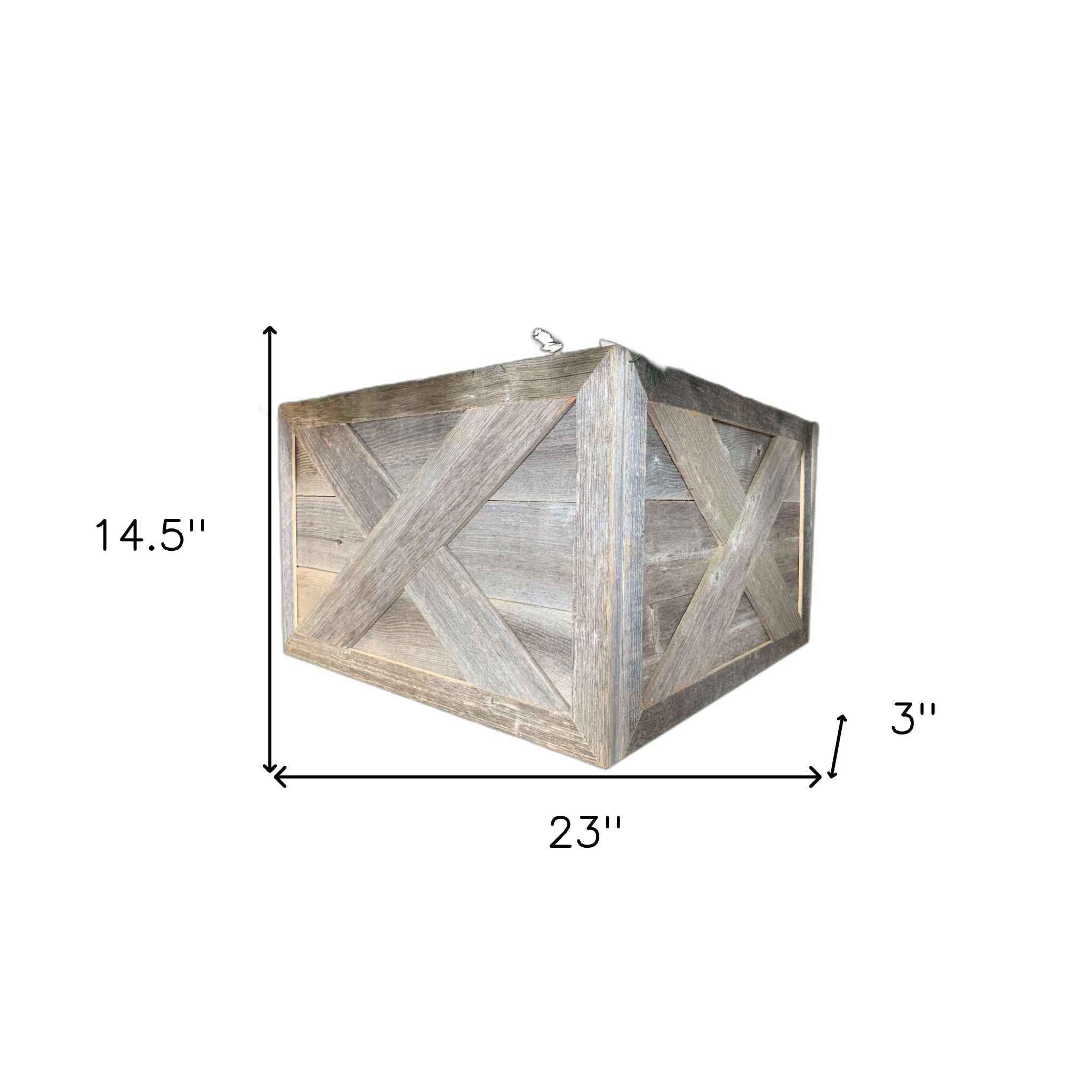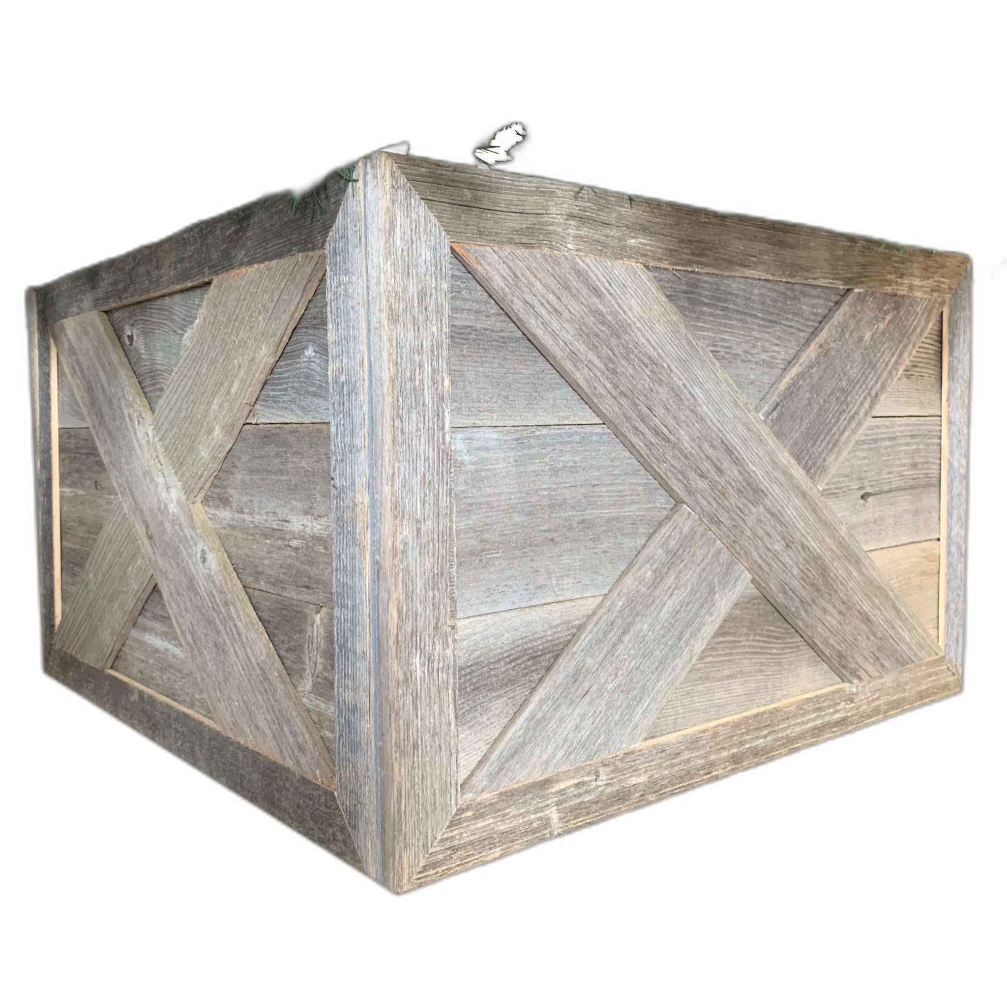 Change up the look of your room with this gorgeous Natural Weathered Gray Christmas Tree Collar Box. This modern farmhouse inspired collar goes around your Christmas Tree Stand to give your tree and the room an updated and designer feel. The X design on each side adds a rustic and charming touch. Replace the traditional tree skirt with this vintage looking box made of genuine recycled and reclaimed wood. 14.5" x 23" x 3.