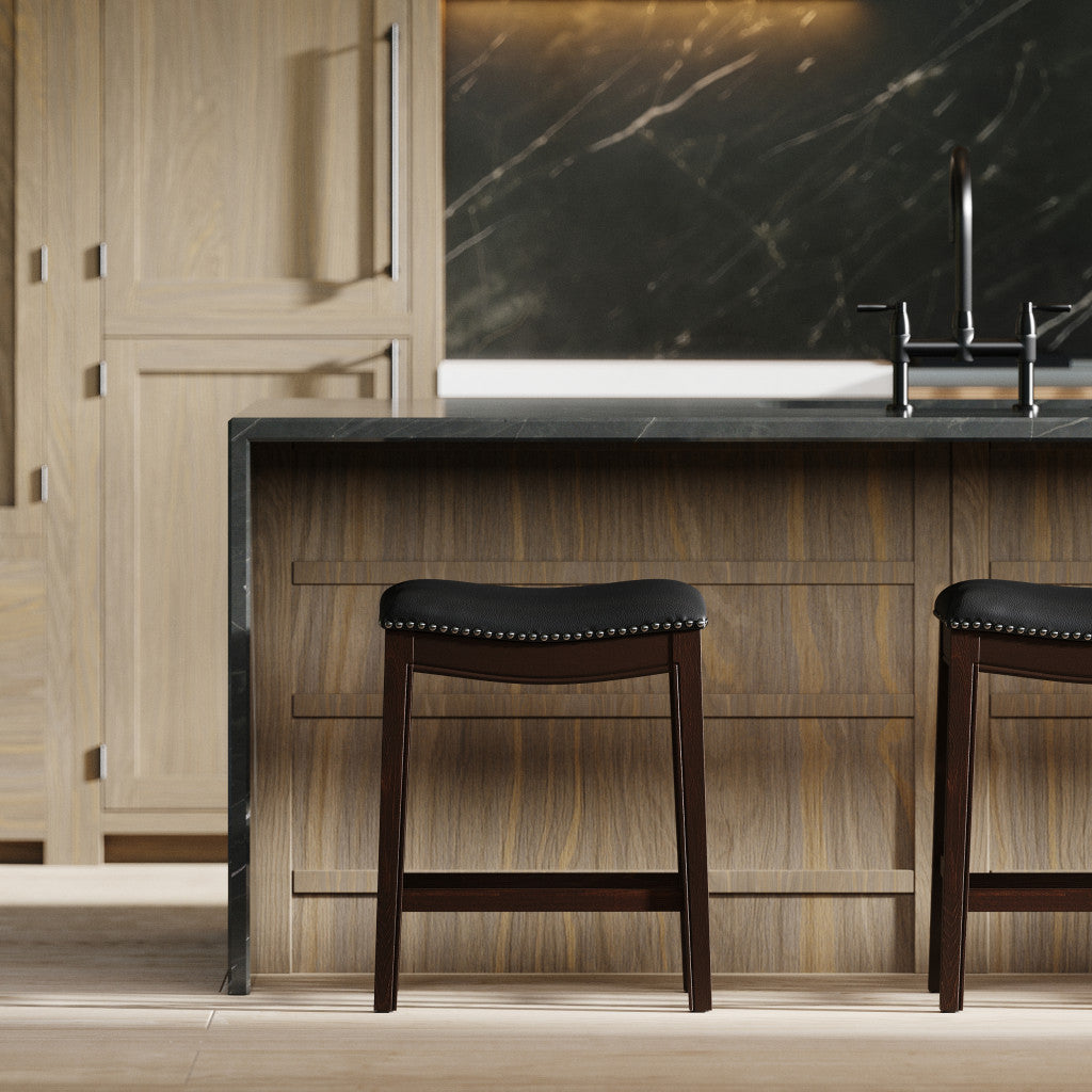 26" Black and Espresso Solid Wood Backless Counter Height Bar Chair - Skip to content