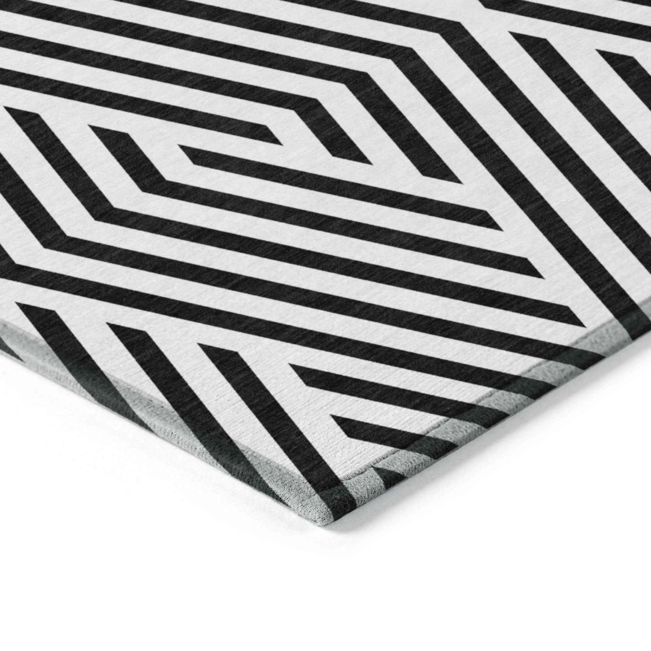 3' X 5' Black and White Geometric Washable Non Skid Indoor Outdoor Area Rug