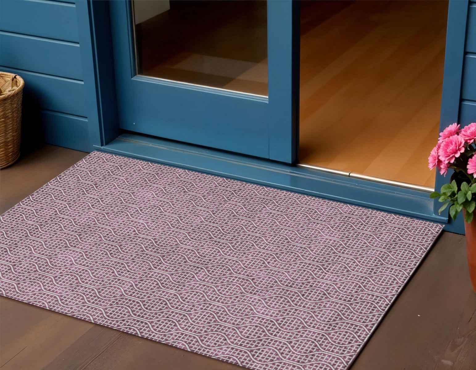3' X 5' Eggplant And Ivory Geometric Washable Indoor Outdoor Area Rug Skip to content