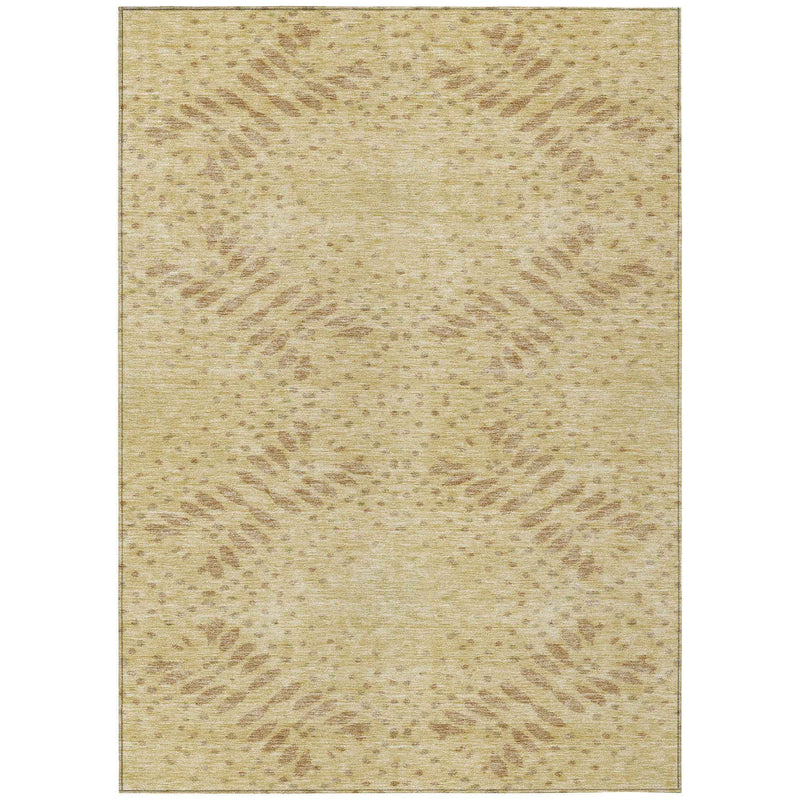 3' X 5' Gold Beige And Taupe Floral Washable Indoor Outdoor Area Rug