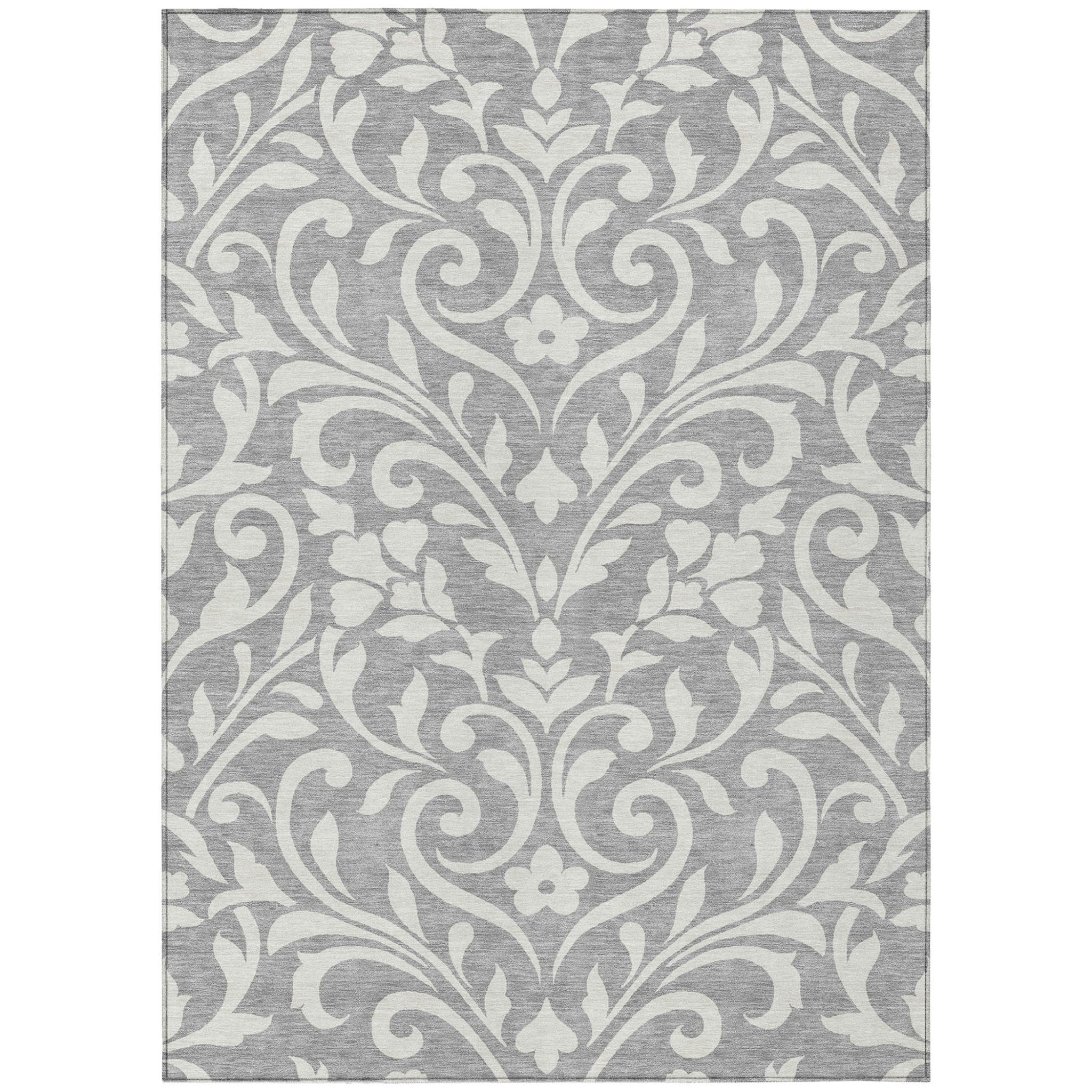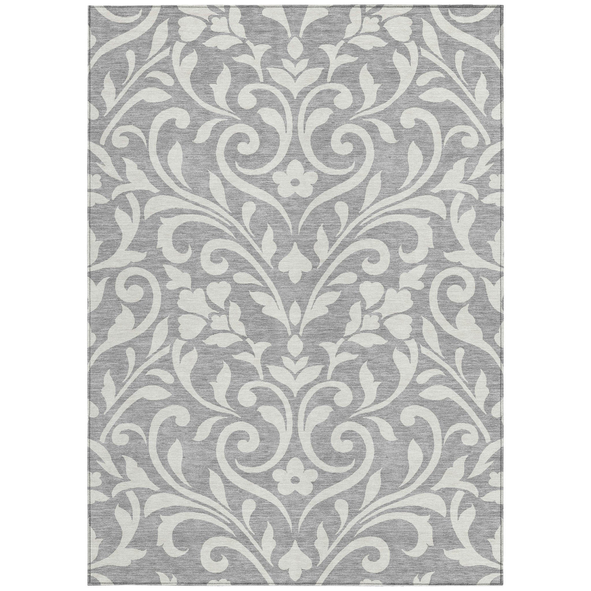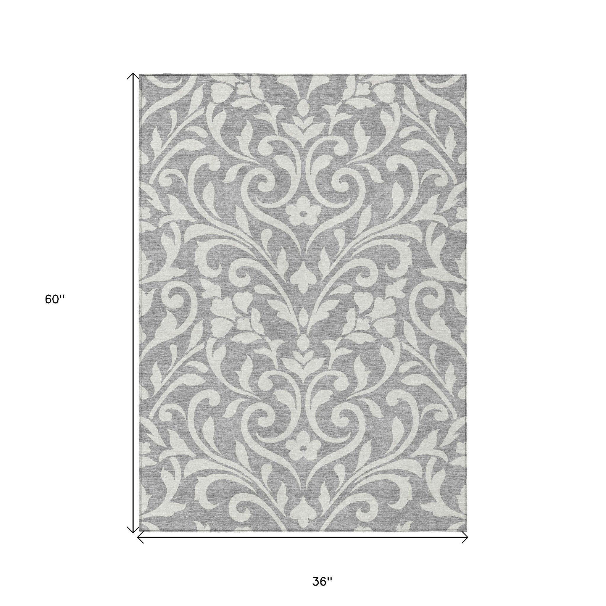 3' X 5' Gray And Ivory Floral Washable Indoor Outdoor Area Rug