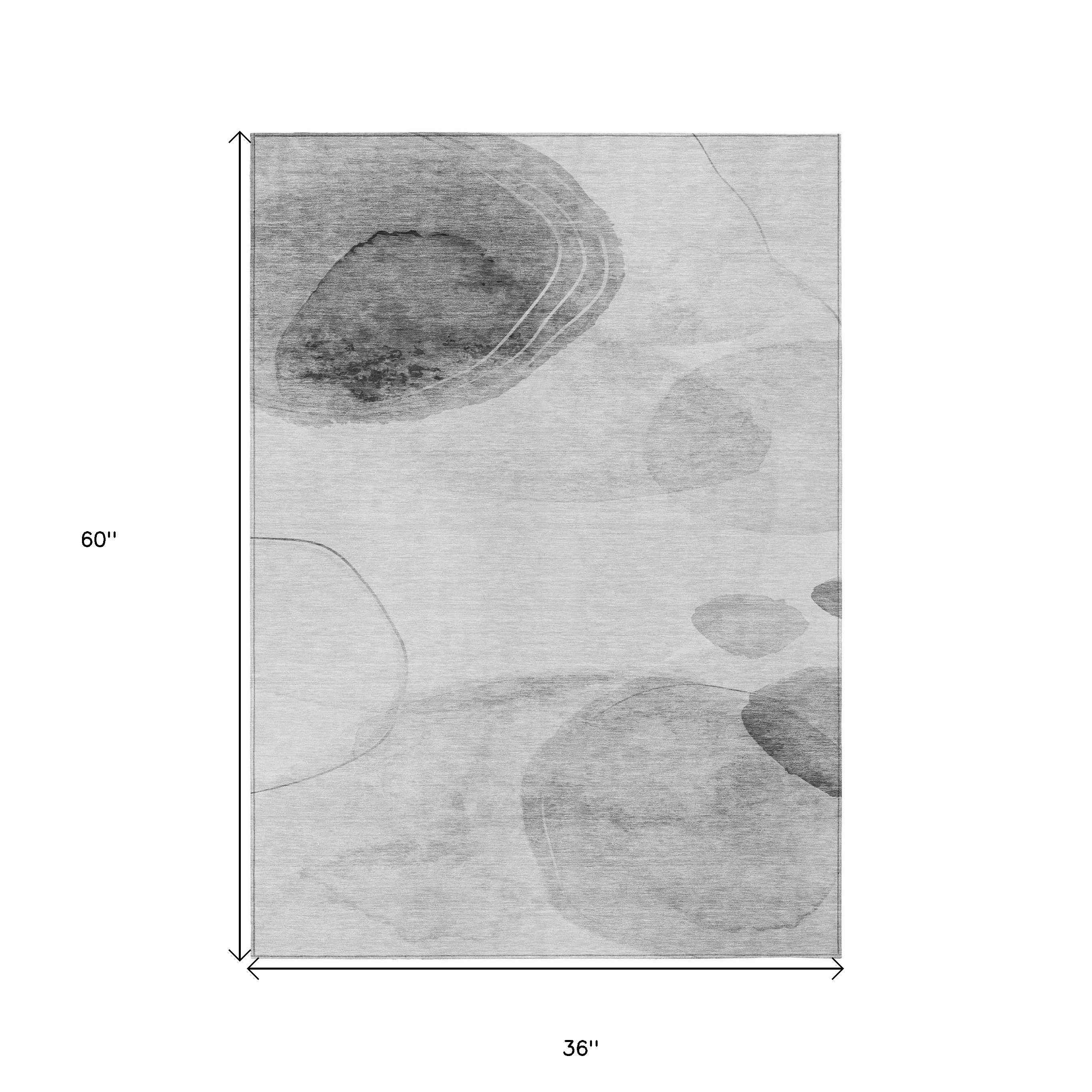 3' X 5' Gray and Light Gray Abstract Washable Non Skid Indoor Outdoor Area Rug