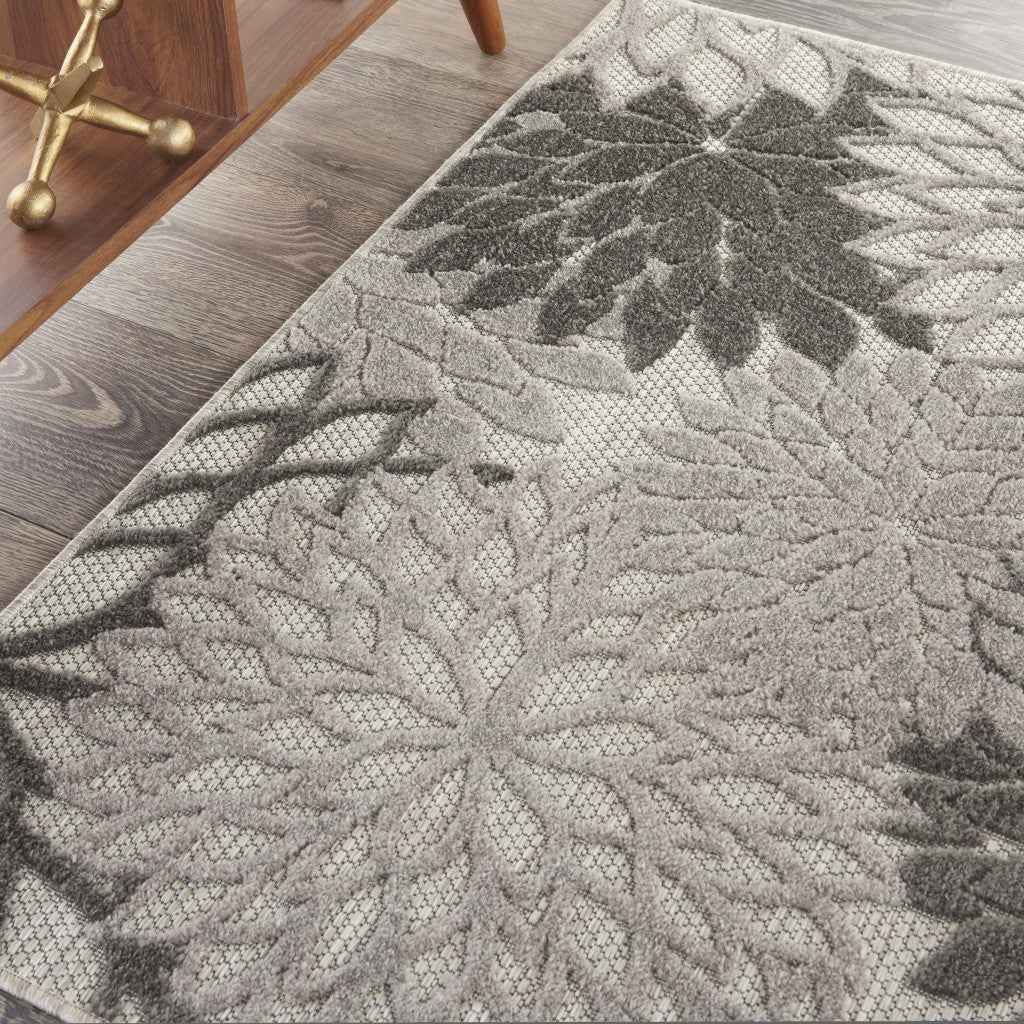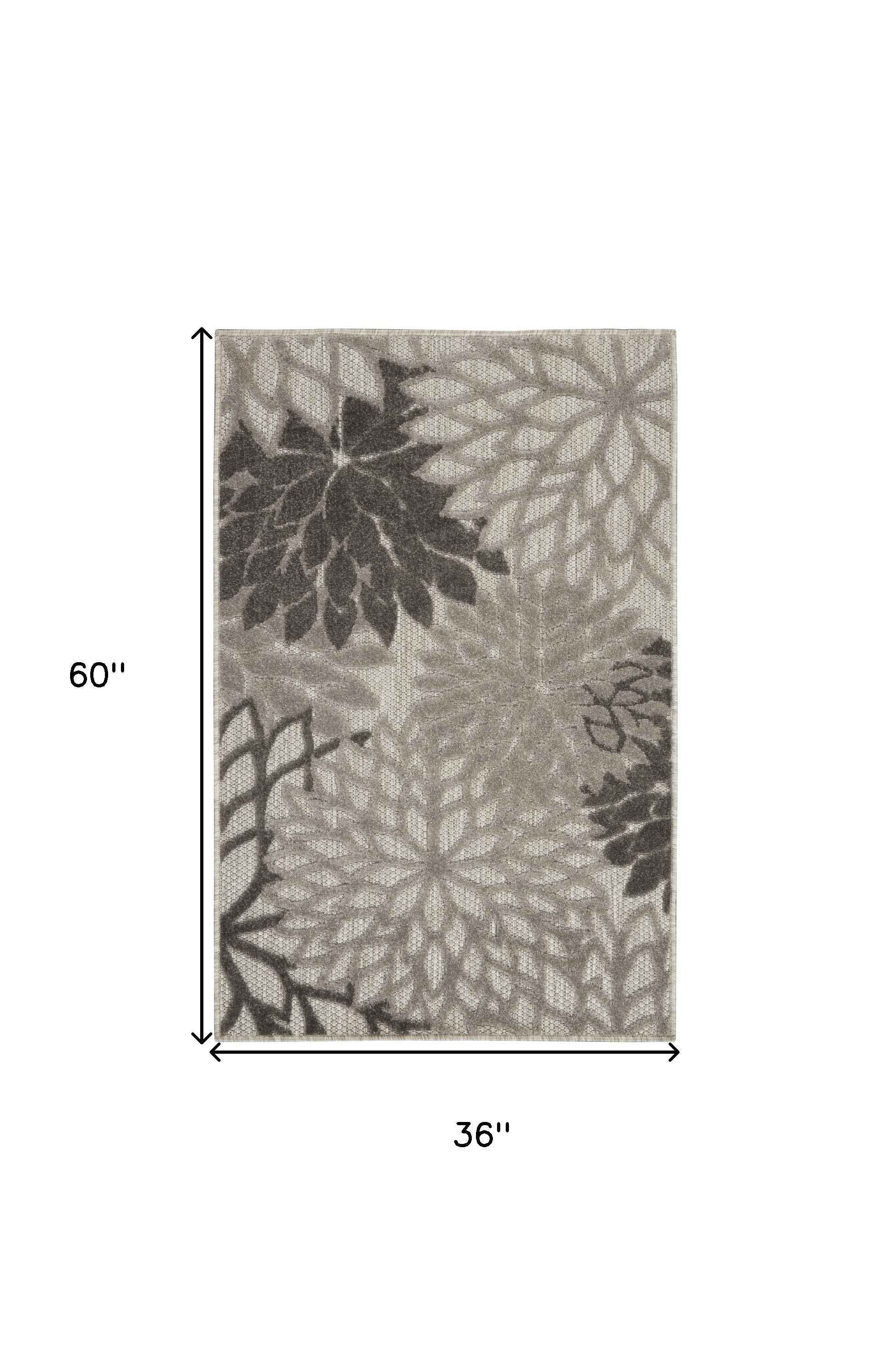 3' X 5' Gray Floral Stain Resistant Non Skid Indoor Outdoor Area Rug