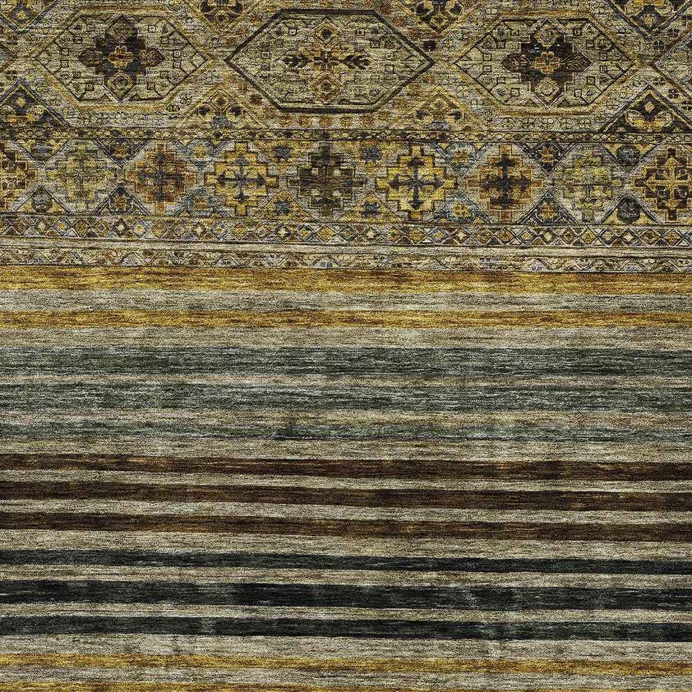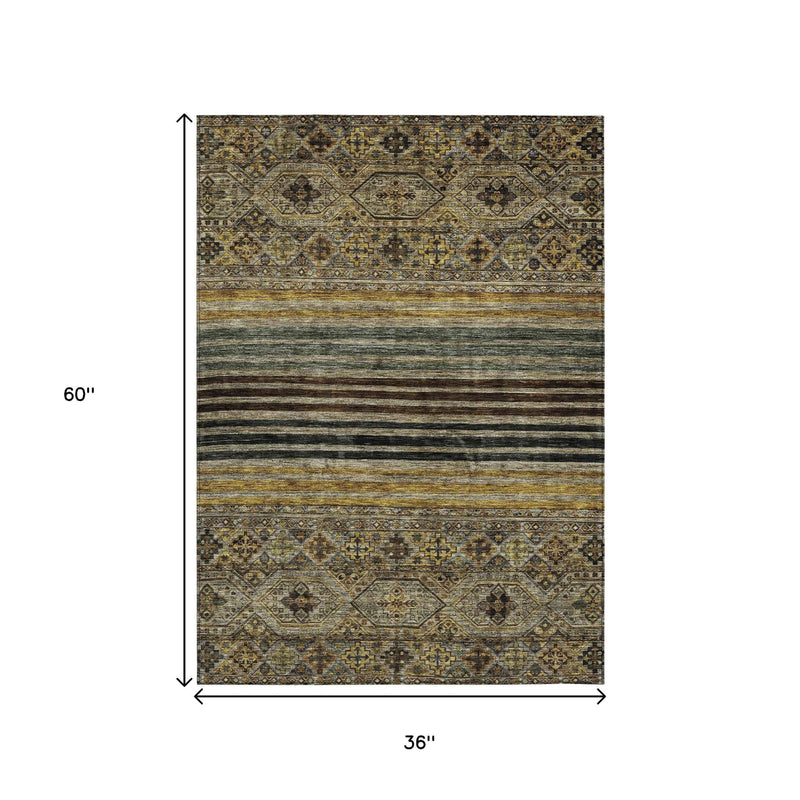 3' X 5' Gray Gold And Brown Medallion Washable Indoor Outdoor Area Rug