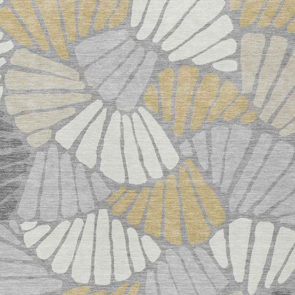 3' X 5' Gray Gold And Ivory Floral Washable Indoor Outdoor Area Rug