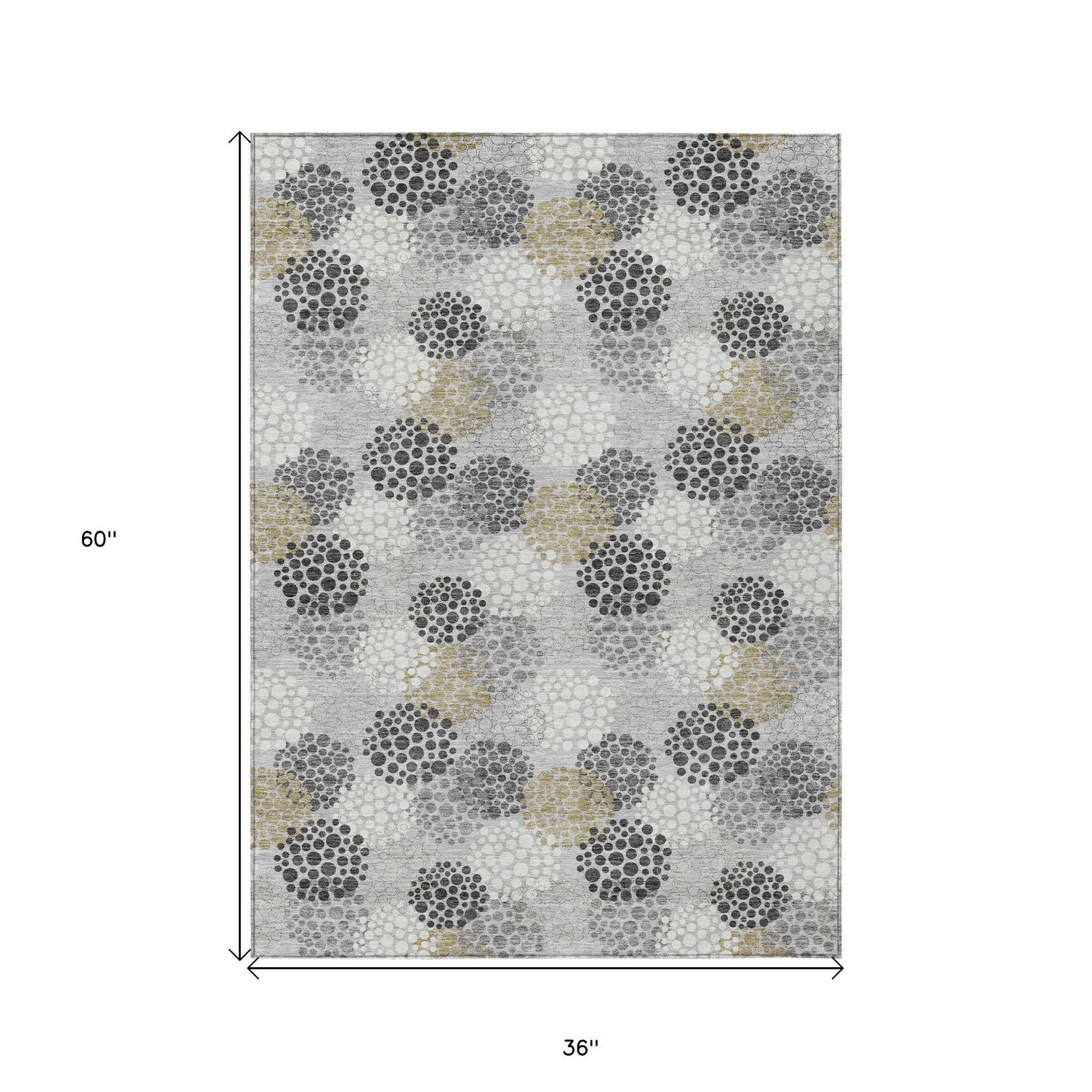 3' X 5' Gray Silver And Ivory Polka Dot Washable Indoor Outdoor Area Rug