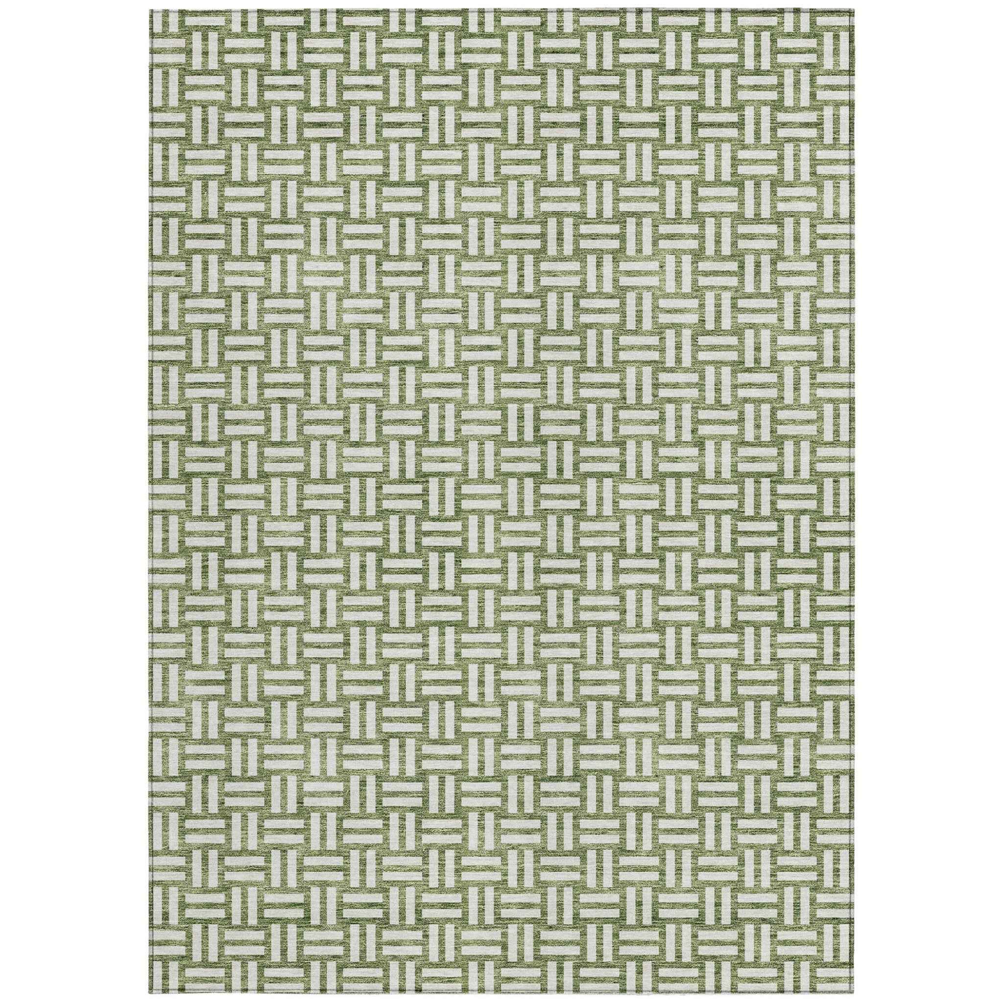 3' X 5' Green And Ivory Geometric Washable Indoor Outdoor Area Rug