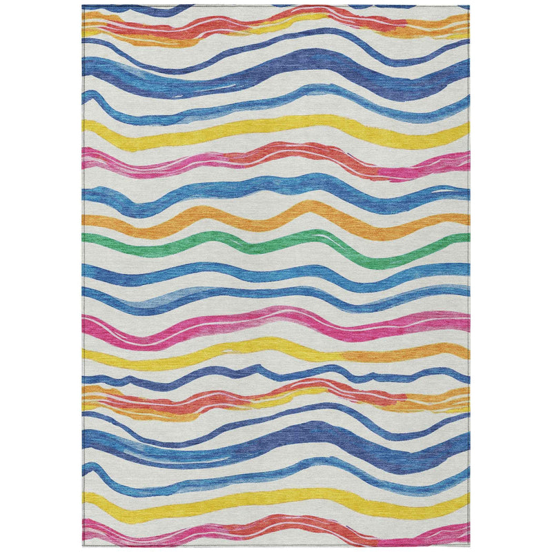 3' X 5' Ivory Blue Pink And Yellow Striped Washable Indoor Outdoor Area Rug