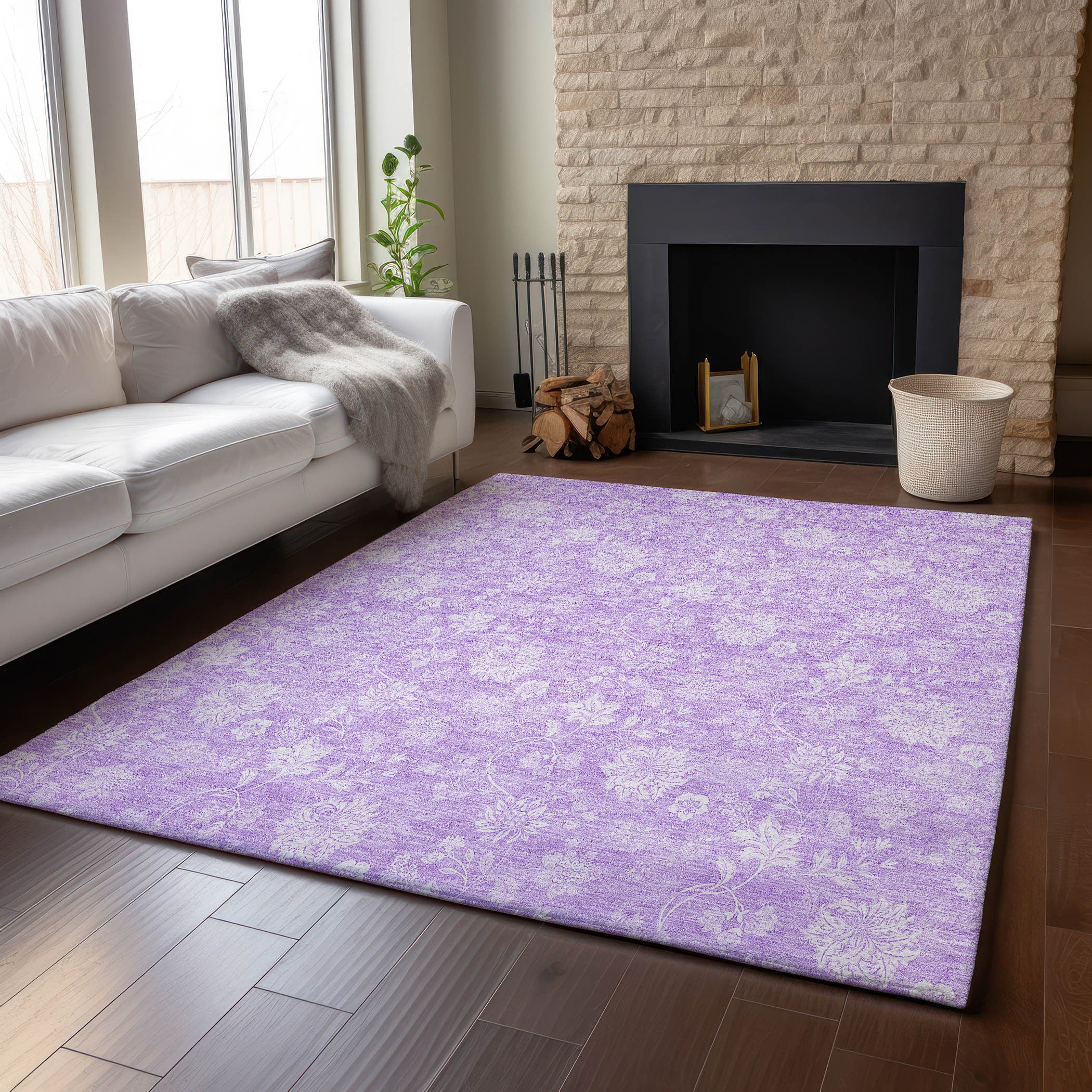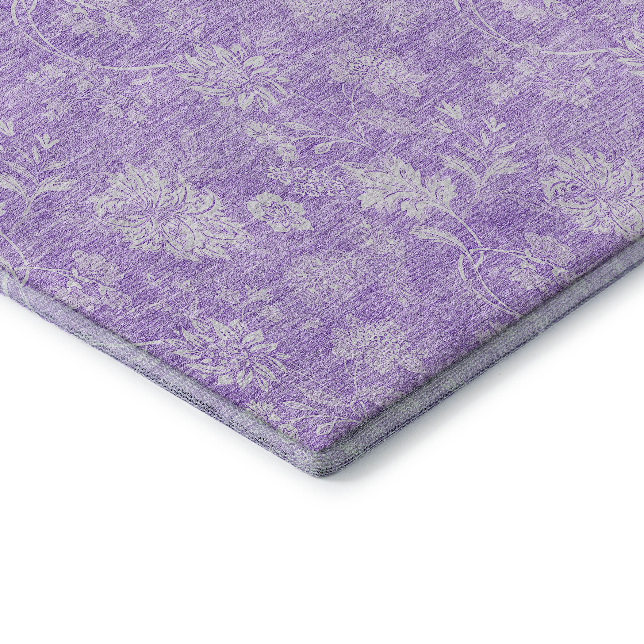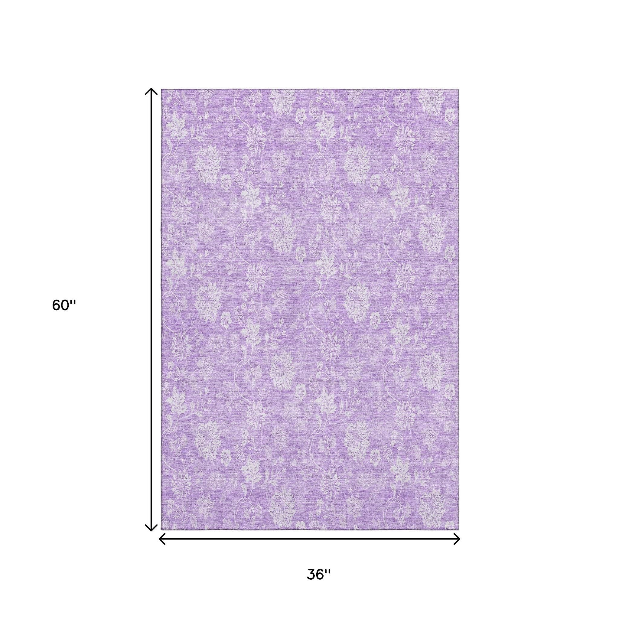 3' X 5' Lilac And Ivory Floral Washable Area Rug With UV Protection